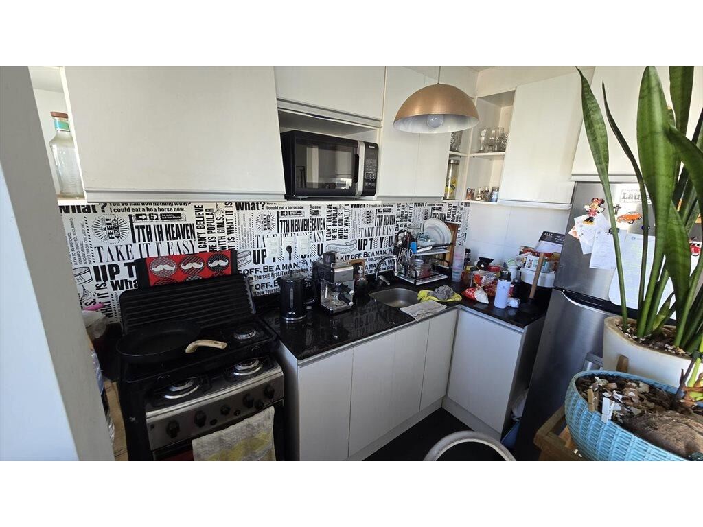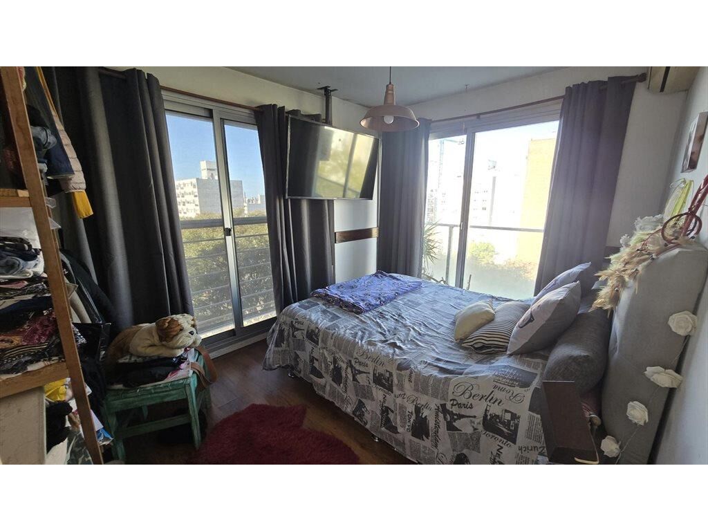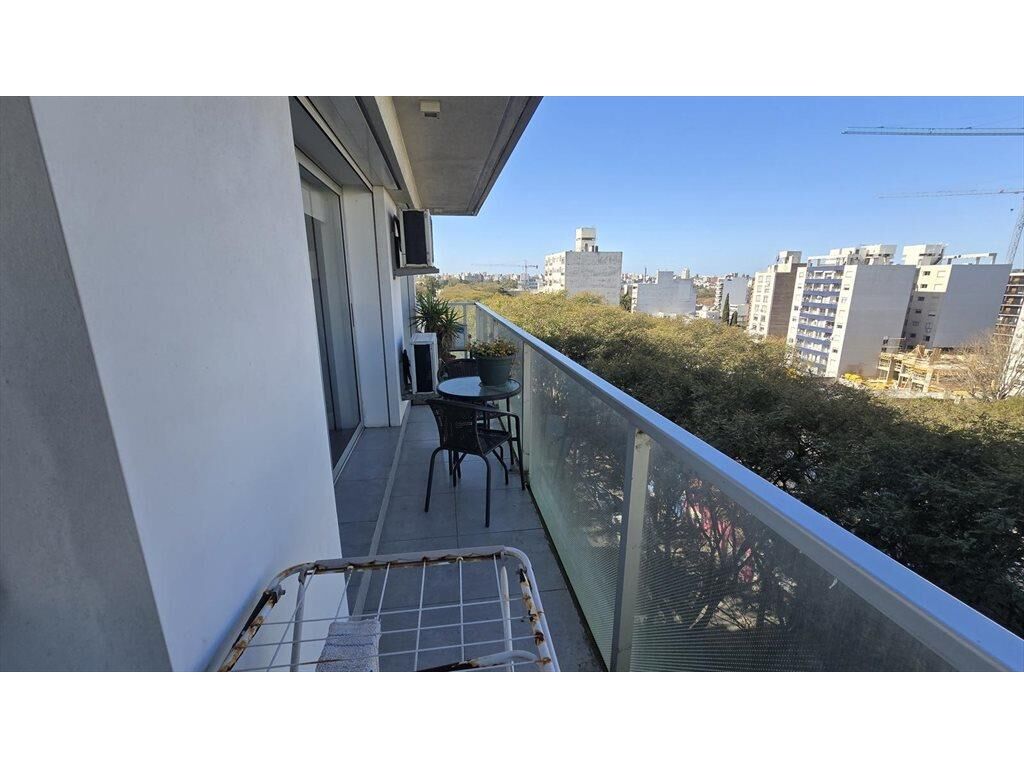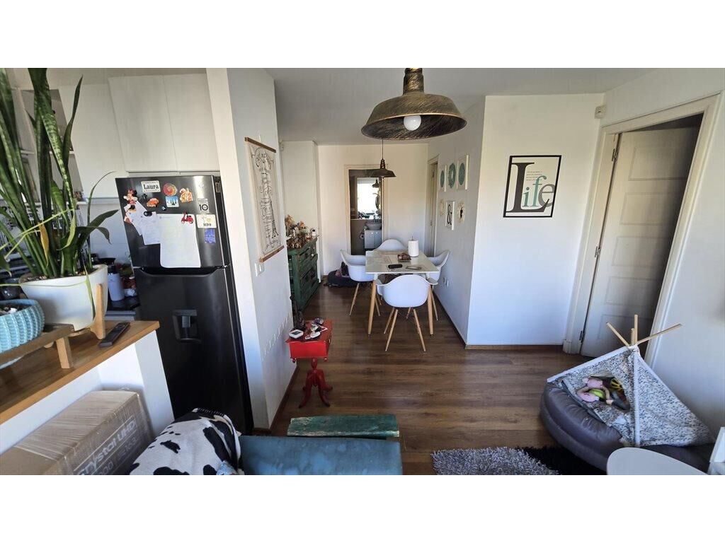 Amplio living comedor con salida a terraza, cocina semi-integrada con muebles aéreos y bajo mesada, baño completo.