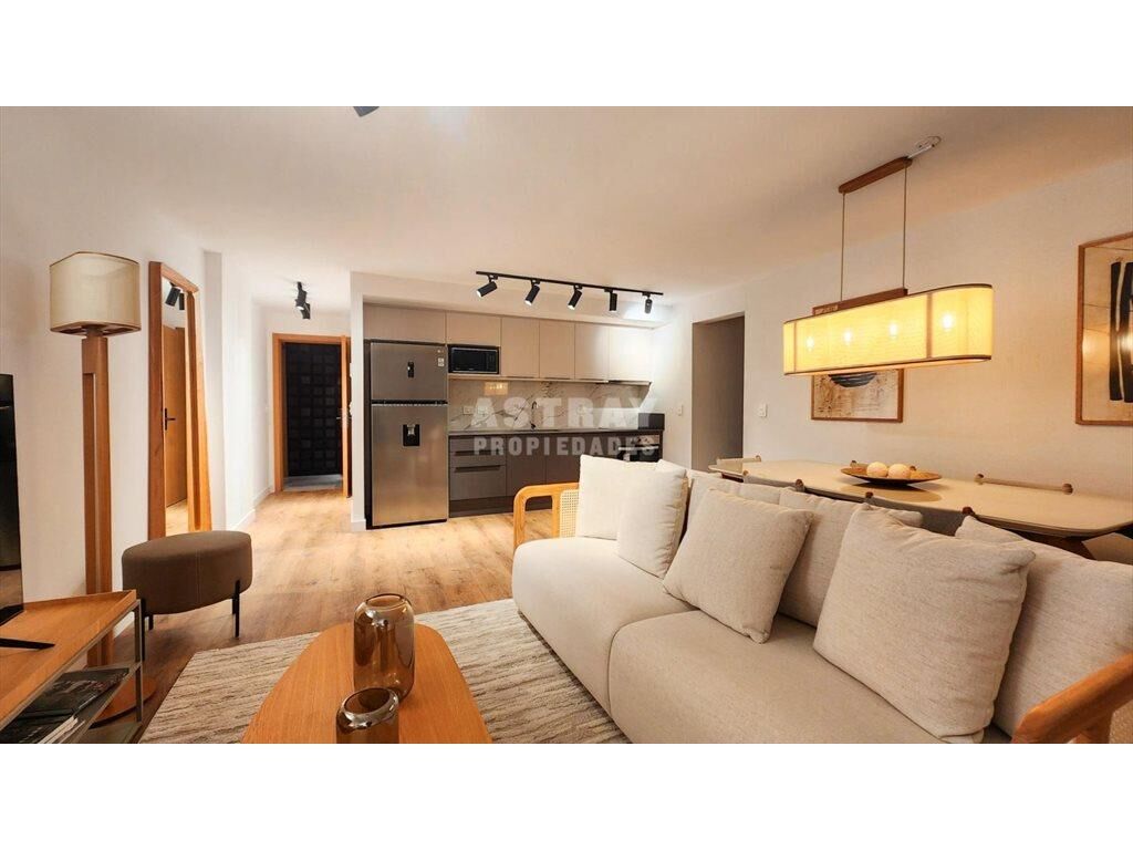 Living comedor de generosas dimensiones, con cocina semi integrada.