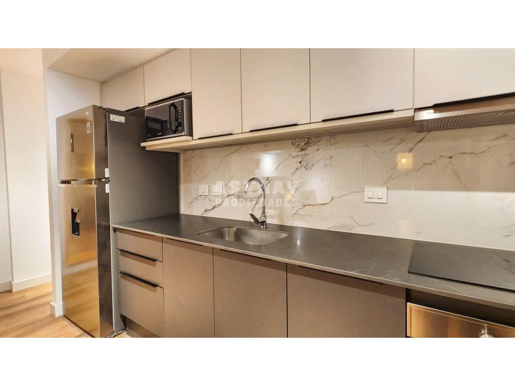 Living comedor de generosas dimensiones, con cocina semi integrada y acceso a balcón.