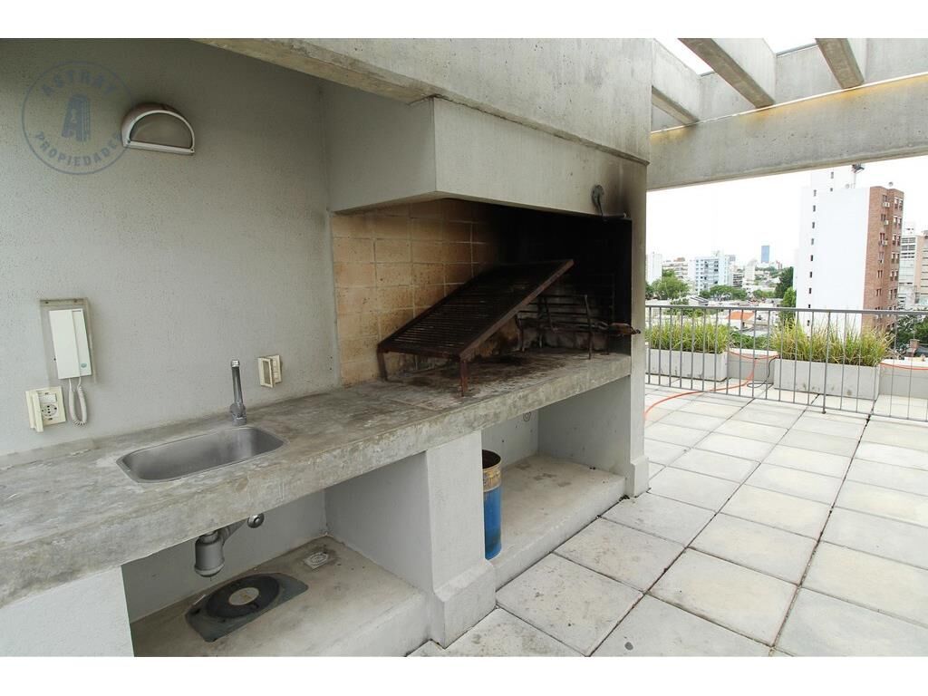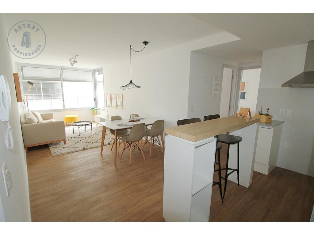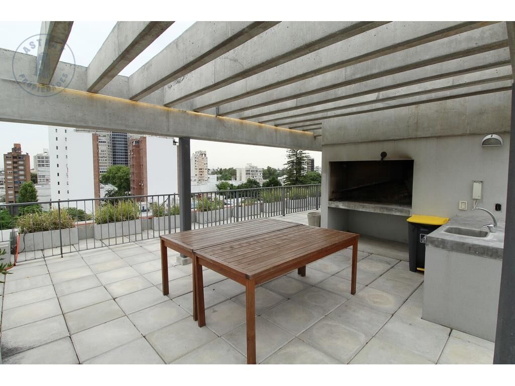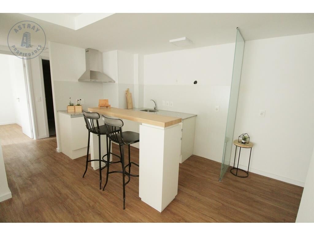Cocina integrada con mesada de granito y pileta de acero inoxidable.