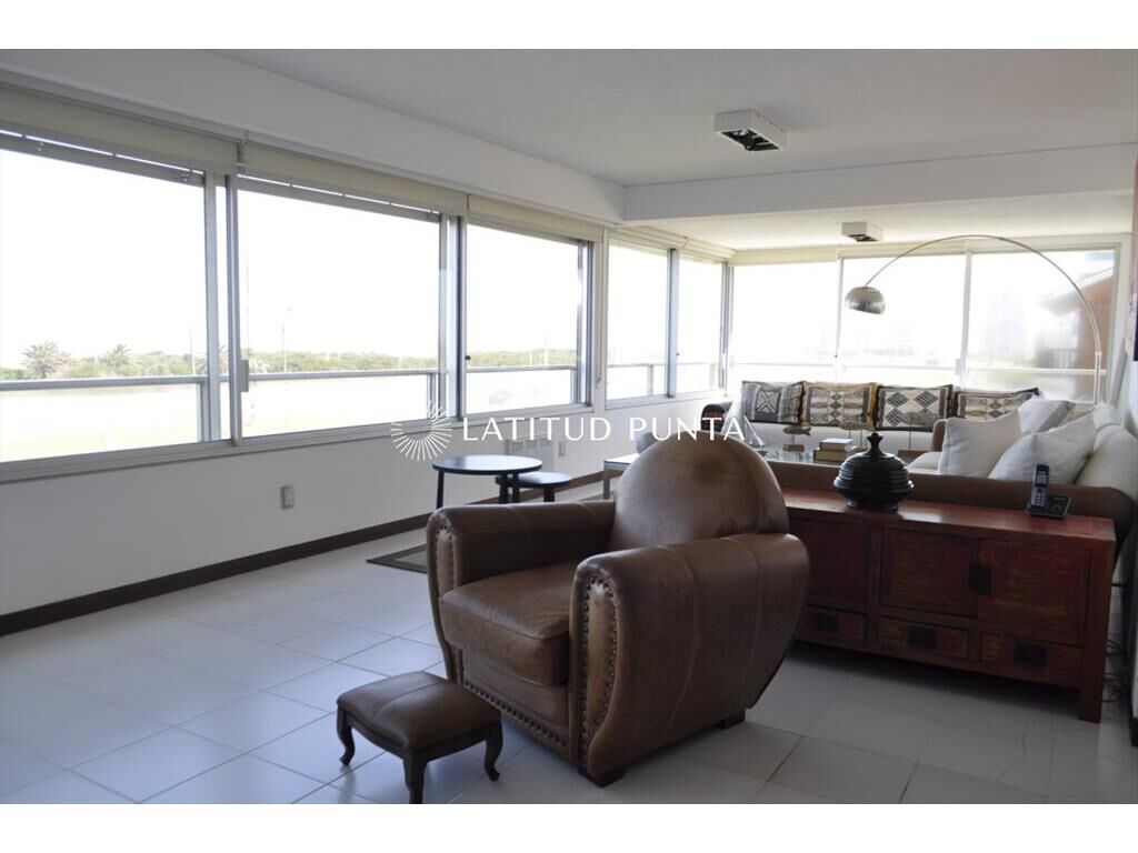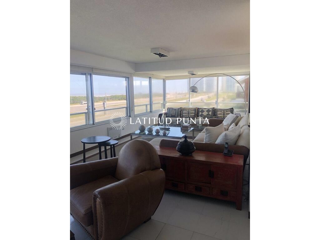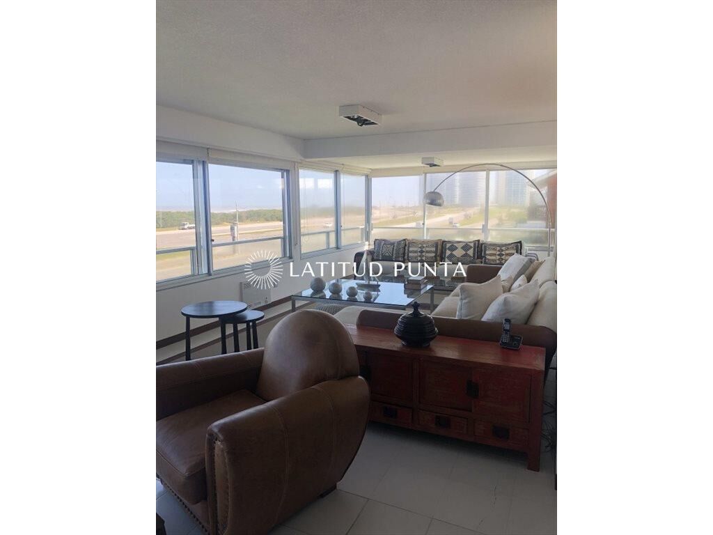 Edificio icónico de punta del Este, excelente calidad, frente a playa Brava. La unidad cuenta con 3 dormitorios y 2 baños (una suite), habitación de servicio con baño, amplio living-comedor, cocina con comedor diario. Servicio de mucamas y recepción 24hs.