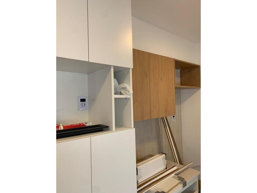 Cocina semi integrada, con armarios en bajo mesada y placar para lugar de guardado.