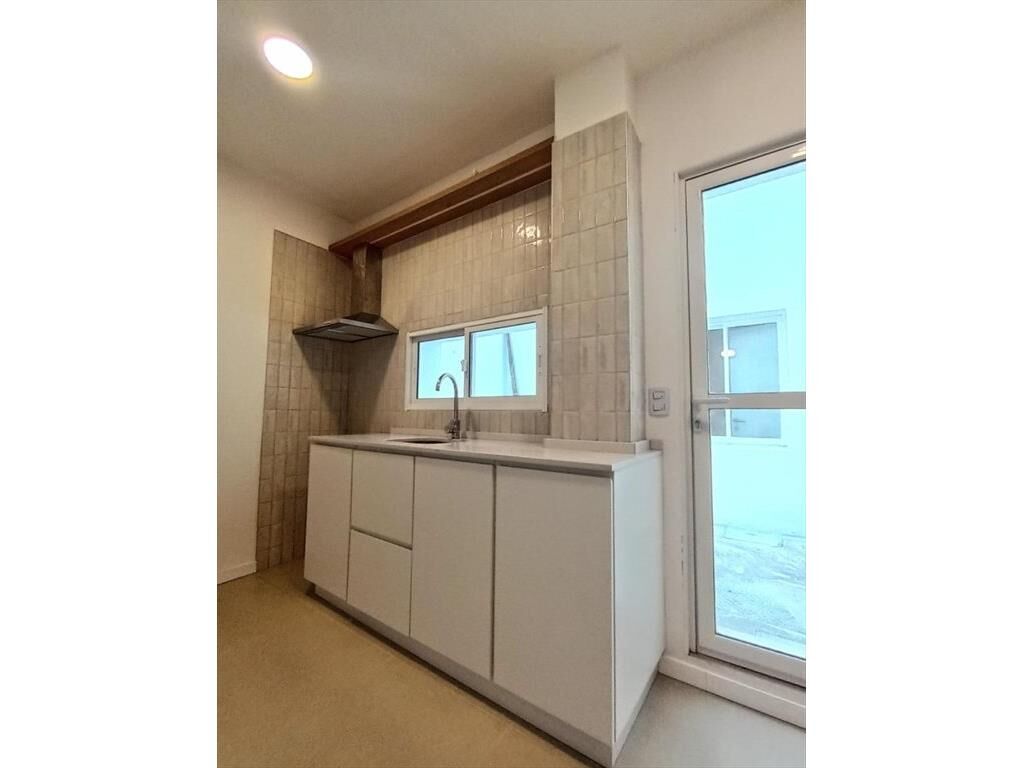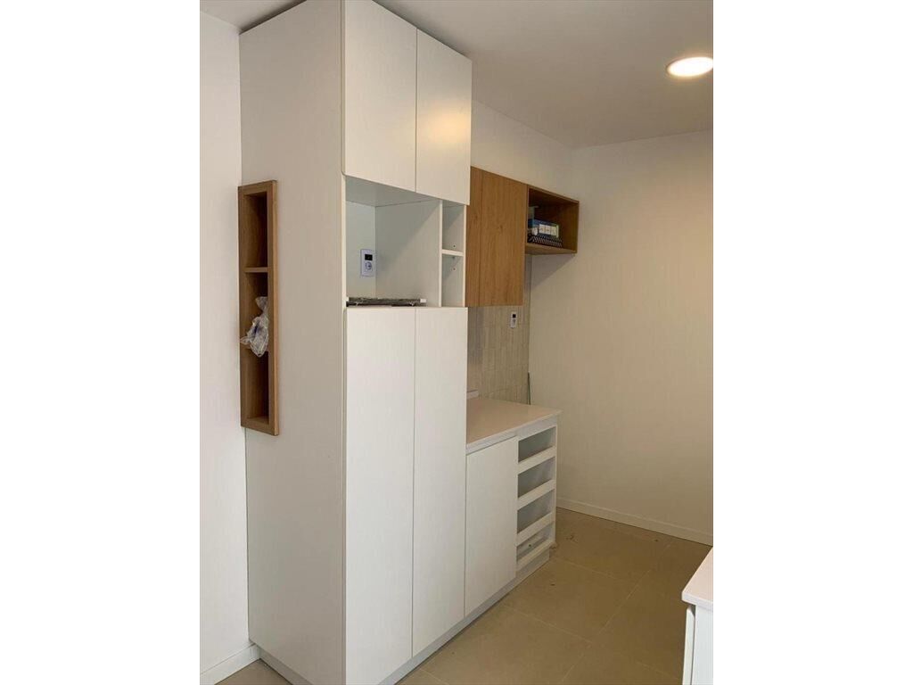 Cocina semi integrada, con armarios en bajo mesada y placar para lugar de guardado.