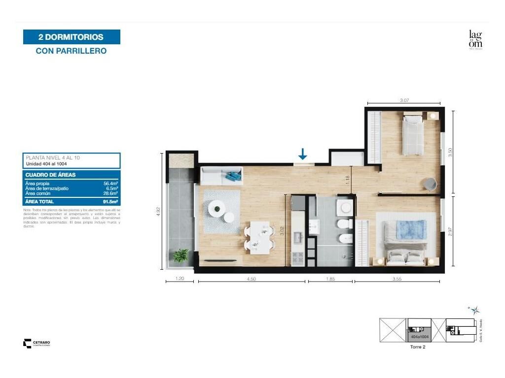 El proyecto LAGOM TRES CRUCES es un conjunto residencial conformado por dos torres de 11 niveles cada una, con un total de 48 unidades de vivienda, con tipología monoambiente y de 1, 2 y hasta 3 dormitorios.