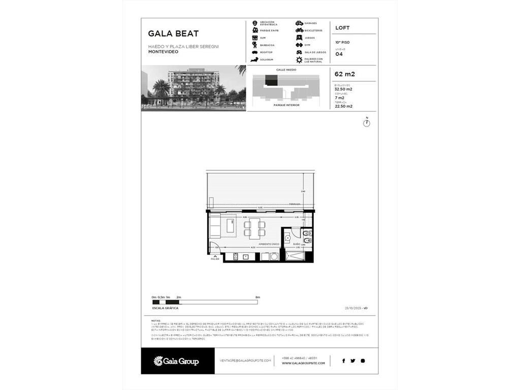 Apartamento monoambiente en piso 10 con cocina integrada, acceso a amplia terraza. Baño Completo.