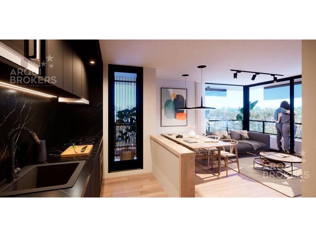 Monoambiente con terraza, cocina integrada con placares, 1 baño completo.