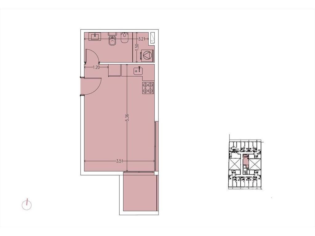 Monoambiente con terraza, cocina integrada con placares, 1 baño y lavadero. Cuenta con agua caliente individual y separación de residuos.