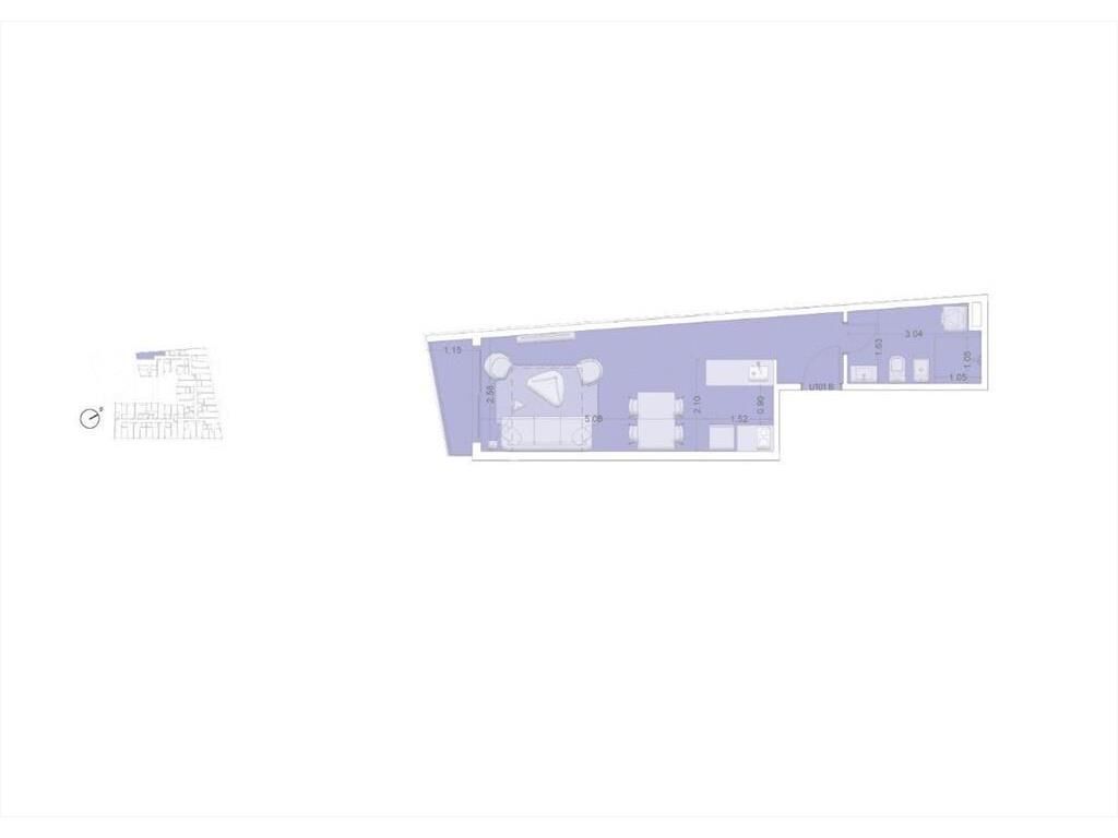 Monoambiente con terraza, cocina integrada con placares, 1 baño.