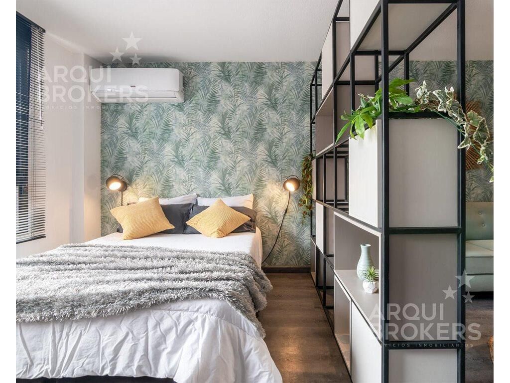 Monoambiente con terraza al frente, placard, cocina integrada con placares, 1 baño. Aire acondicionado.