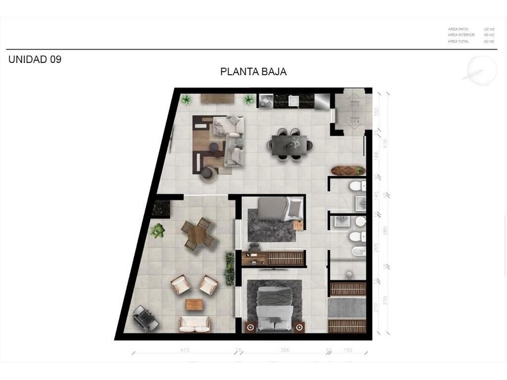 oUnidades 02, 07 y 08: Dúplex con patio frontal.