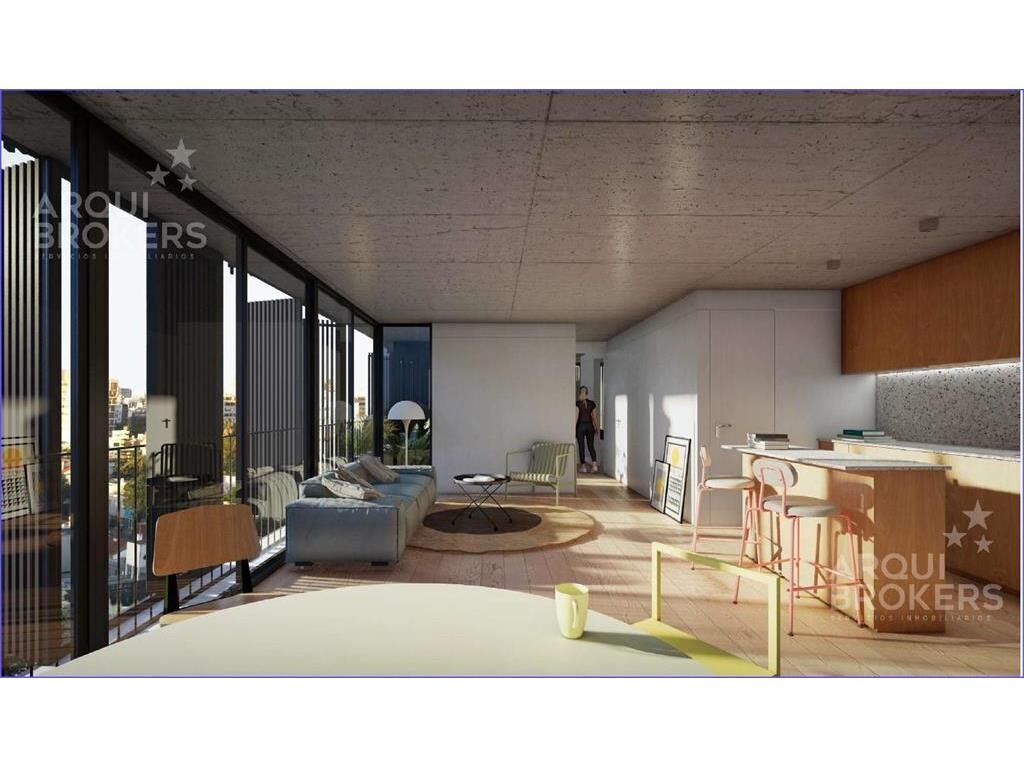 Living comedor con amplia terraza al frente de 35 m2, cocina demi integrada con placares, equipada con cocina, termotanque, horno, anafe y microondas, 2 dormitorios con placares, 1 baño completo y 1 baño social. Cuenta con equipos de aire acondicionado en todos los ambientes.