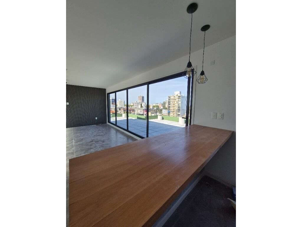 El acceso a la unidad se realiza a través de un hall de distribución con placard despojador que incluye previsión para lavarropas y calefón. El living comedor cuenta con salida directa a una terraza de orientación este, con vistas despejadas. La cocina se encuentra integrada, equipada con mesada de granito, barra de madera desayunador, doble pileta de acero inoxidable, anafe, horno, campana y calefón instalado. El dormitorio tiene placard y acceso propio a la terraza. El baño es amplio y está equipado con extractor.