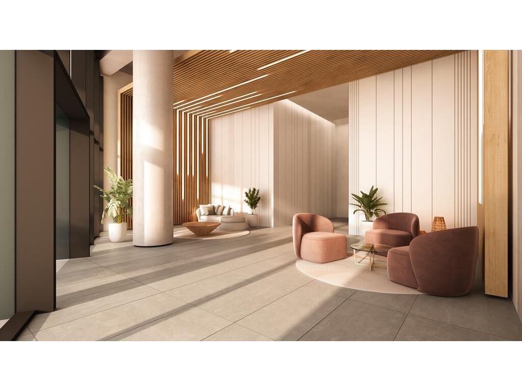 1) Lobby de acceso de doble altura con diseño contemporáneo,