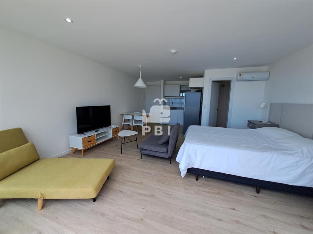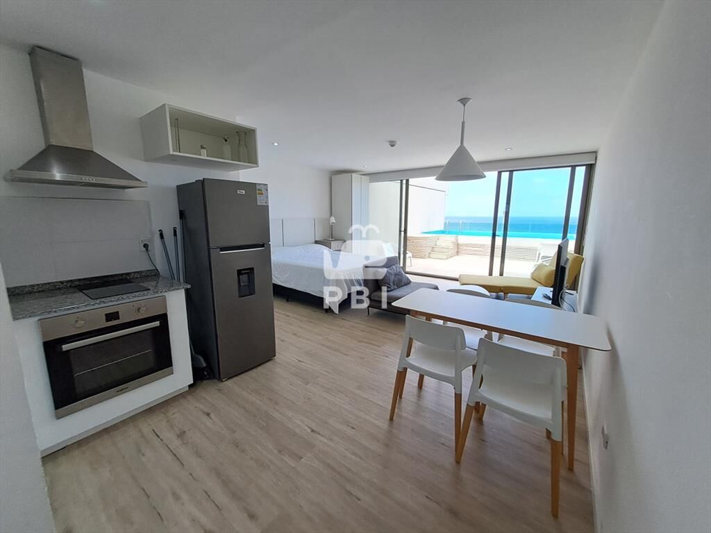 Monoambiente con piscina privada, cocina integrada, equipada, anafe, microondas, heladera con freezer. Además, cuenta con un placard en la cocina, campana y termotanque.