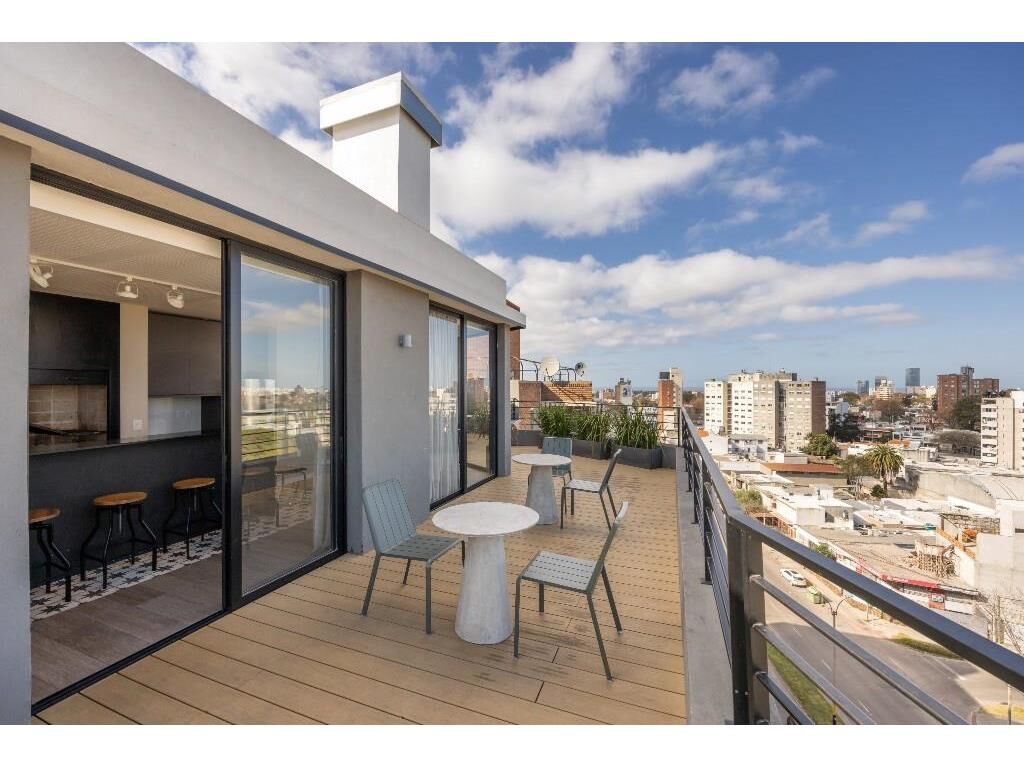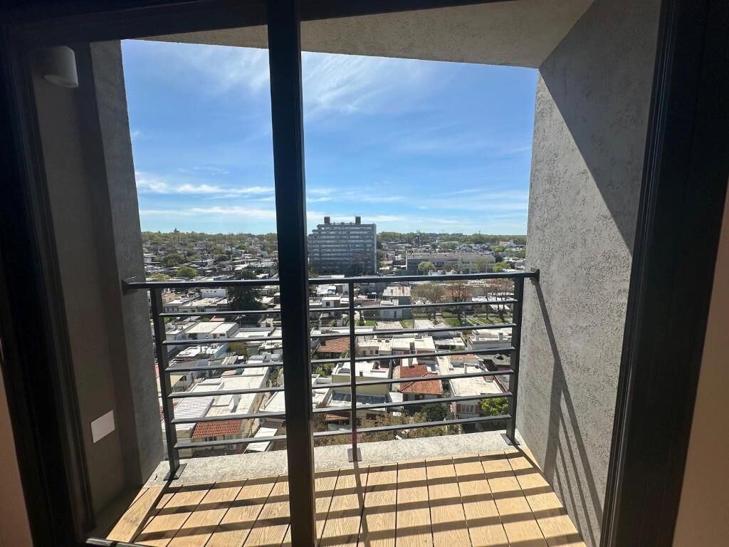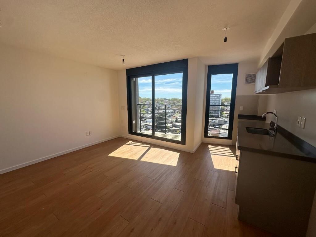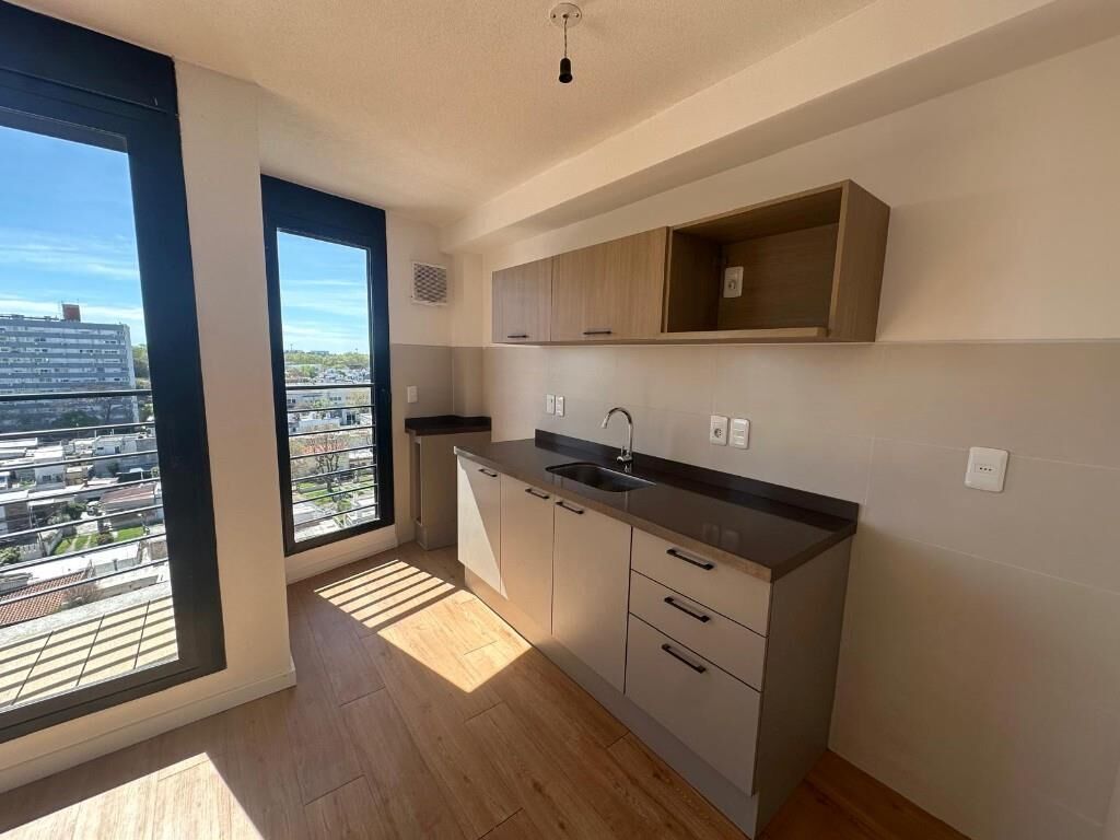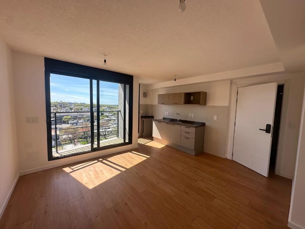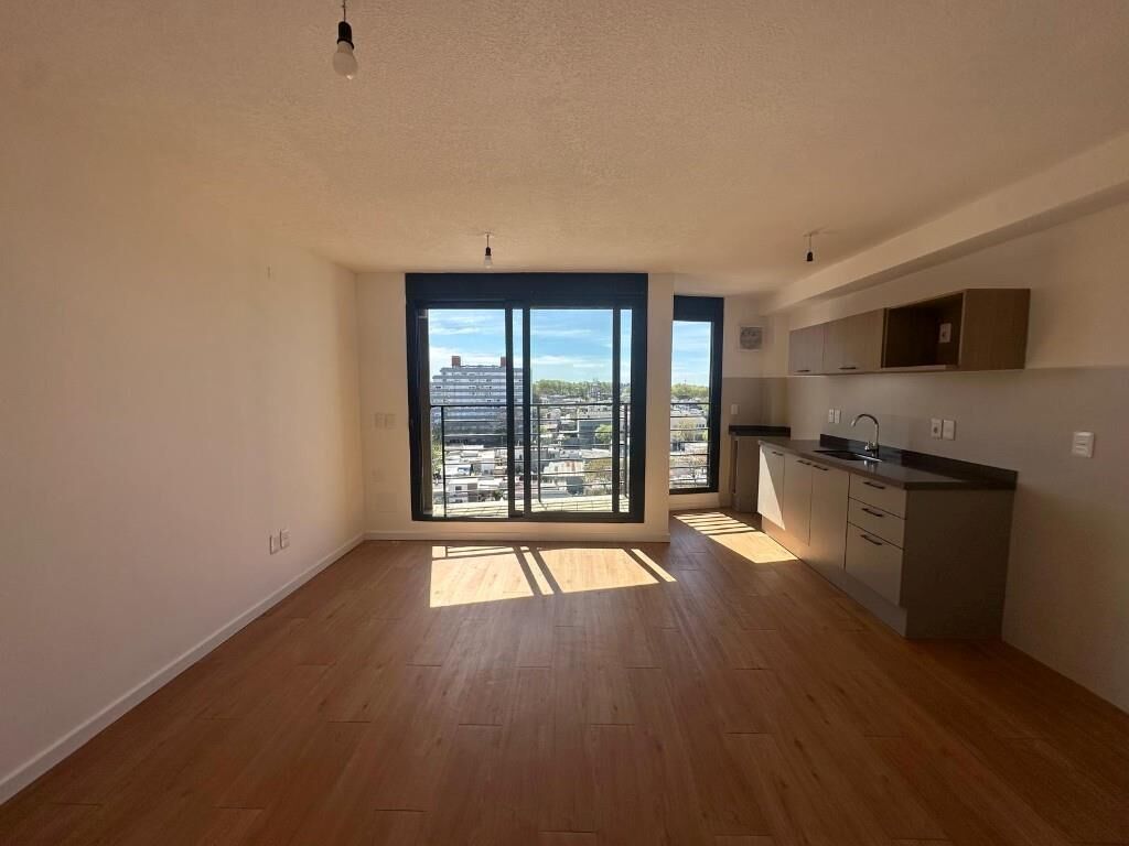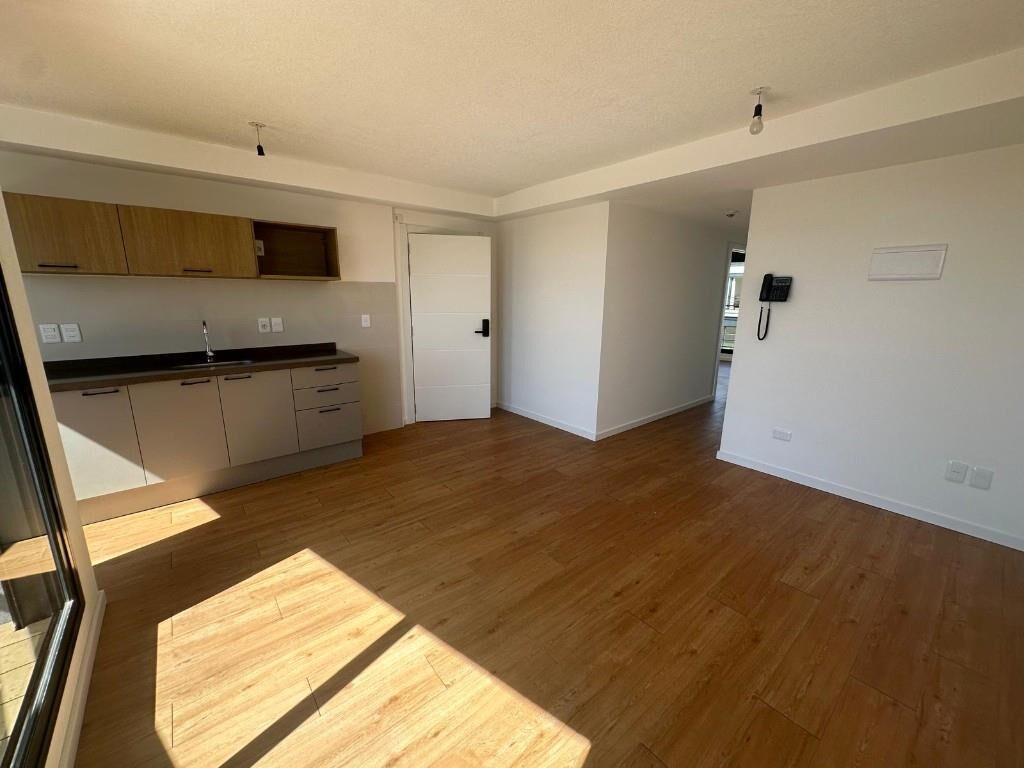 Amplio living comedor con salida a la terraza, cocina integrada con muebles aéreos y bajo mesada.