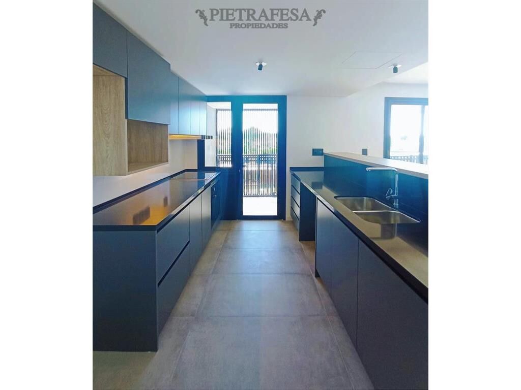 Moderna cocina con placares, lavadero, anafe y horno empotrado.