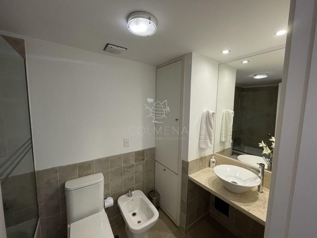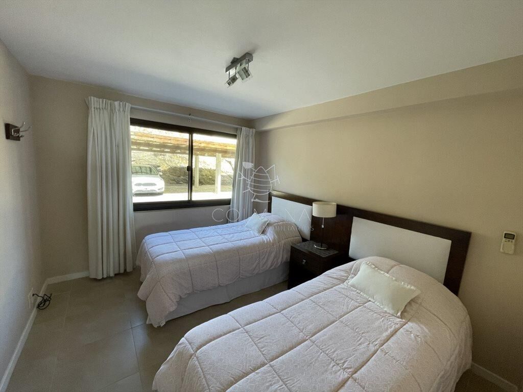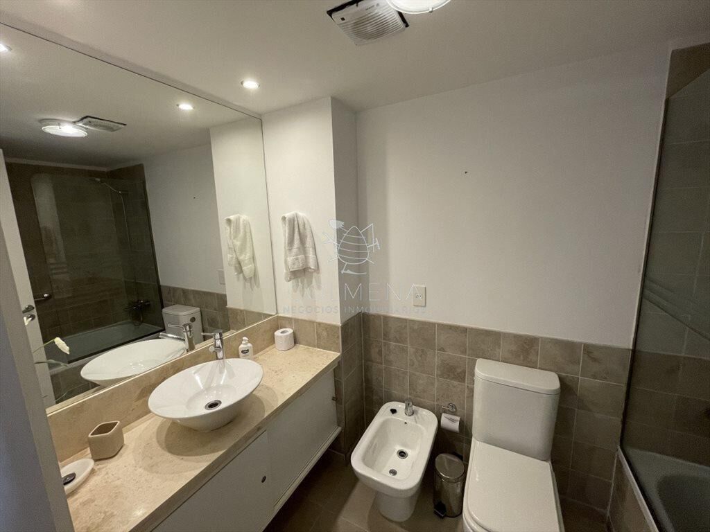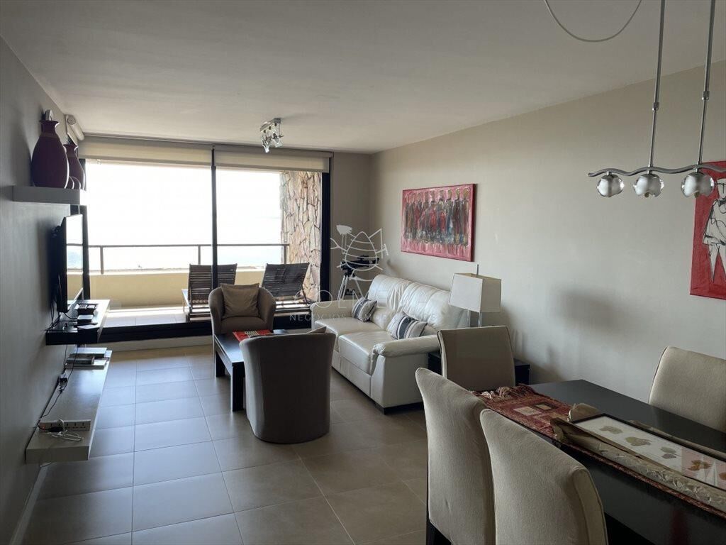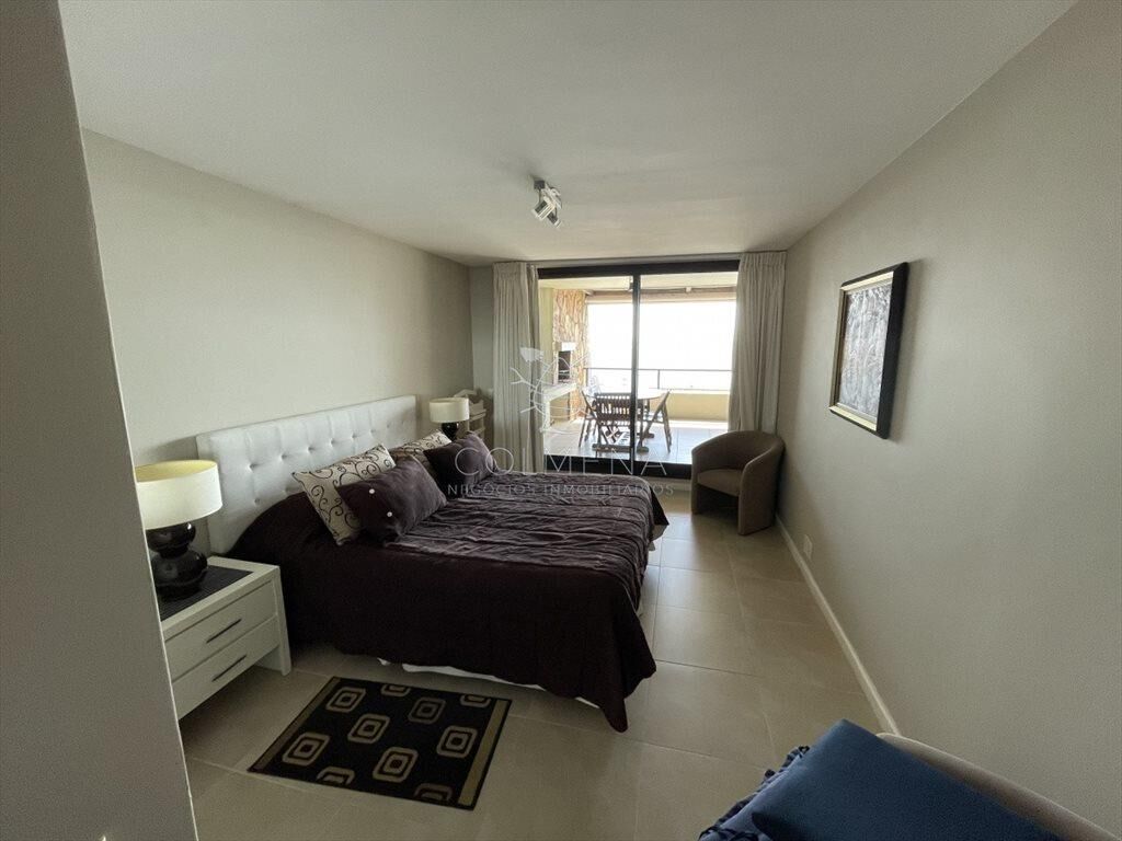 Apartamento de 2 dormitorios en suite, living comedor, cocina y lavadero, terraza con vista al mar y parrillero. Cochera y baulera.