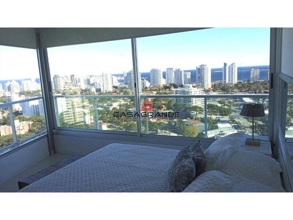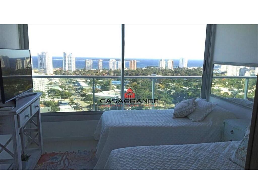 Apartamento en el edificio Gala Vista, piso alto con vista al mar, living comedor, 2 dormitorios, 1 en suite con hermosa vista, 2 baños, cocina, aire acondicionado, garaje.