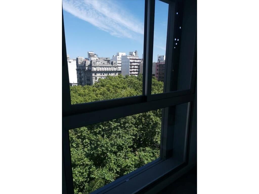 Dormitorio muy luminoso con hermosa vista (piso 8) a la plaza Libertad. Ventanas de vidrio anodizado con doble vidrio hermético (dvh), sistema Gala integrada con excelente aislación acústica. Aire acondicionado y amplio placard.