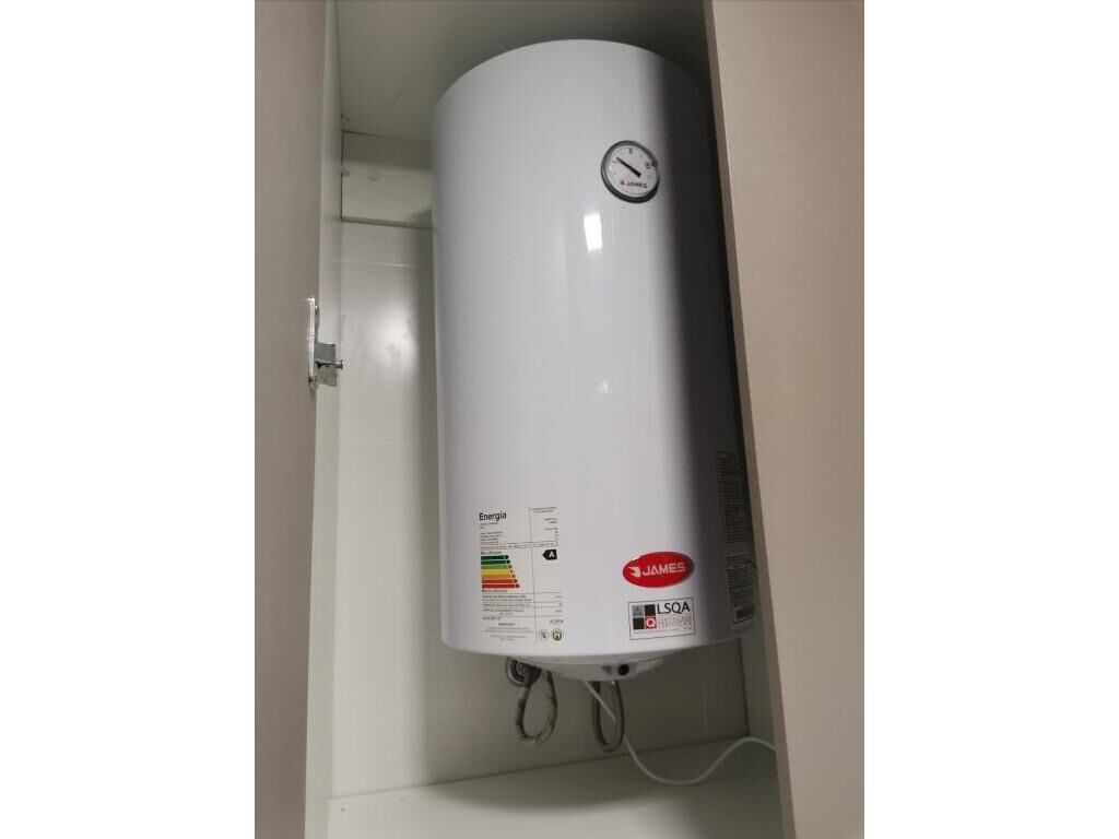 Cocina semiintegrada equipada con muebles aéreos y bajo mesada. Campana extractora en acero inoxidable con sistema de extracción de aire y humos. Mesadas en cuarzo negro. Termotanque instalado. Espacio con conexión para lavarropas.