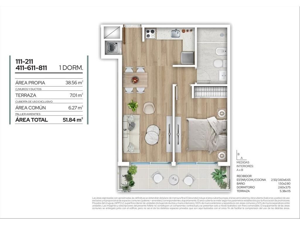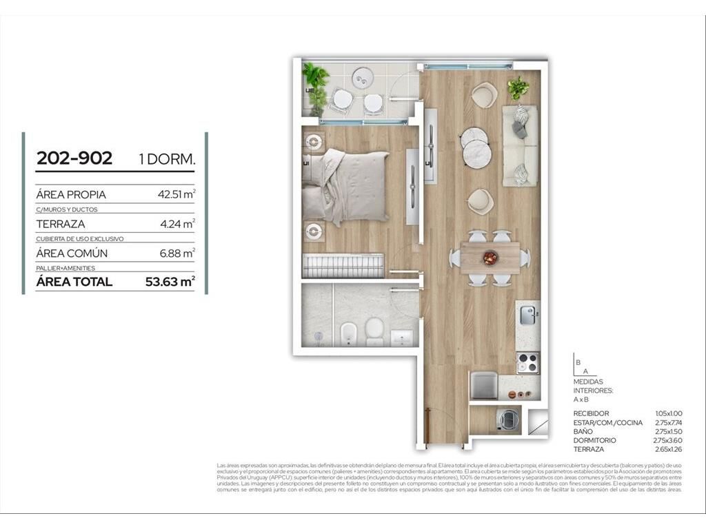 Apartamentos 1 dormitorio desde USD 126.912 (Unidad 302 Contrafrente) y USD 135.531 (Unidad 111 Frente)