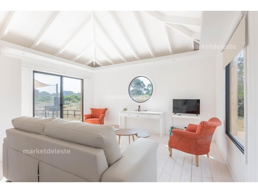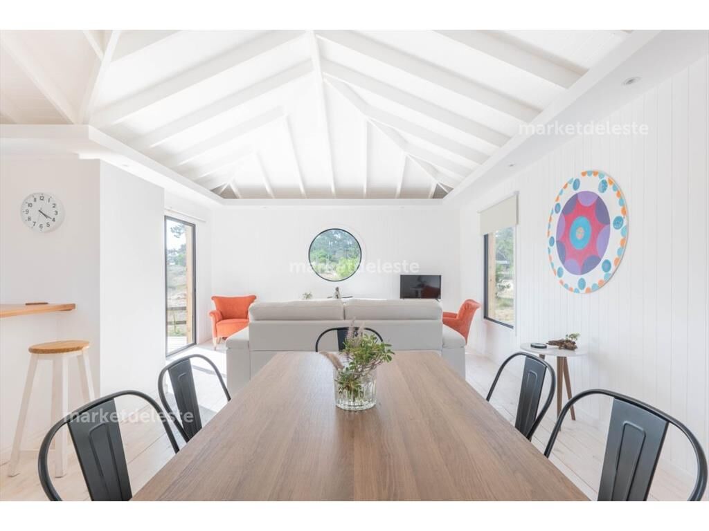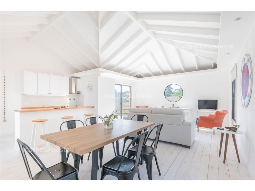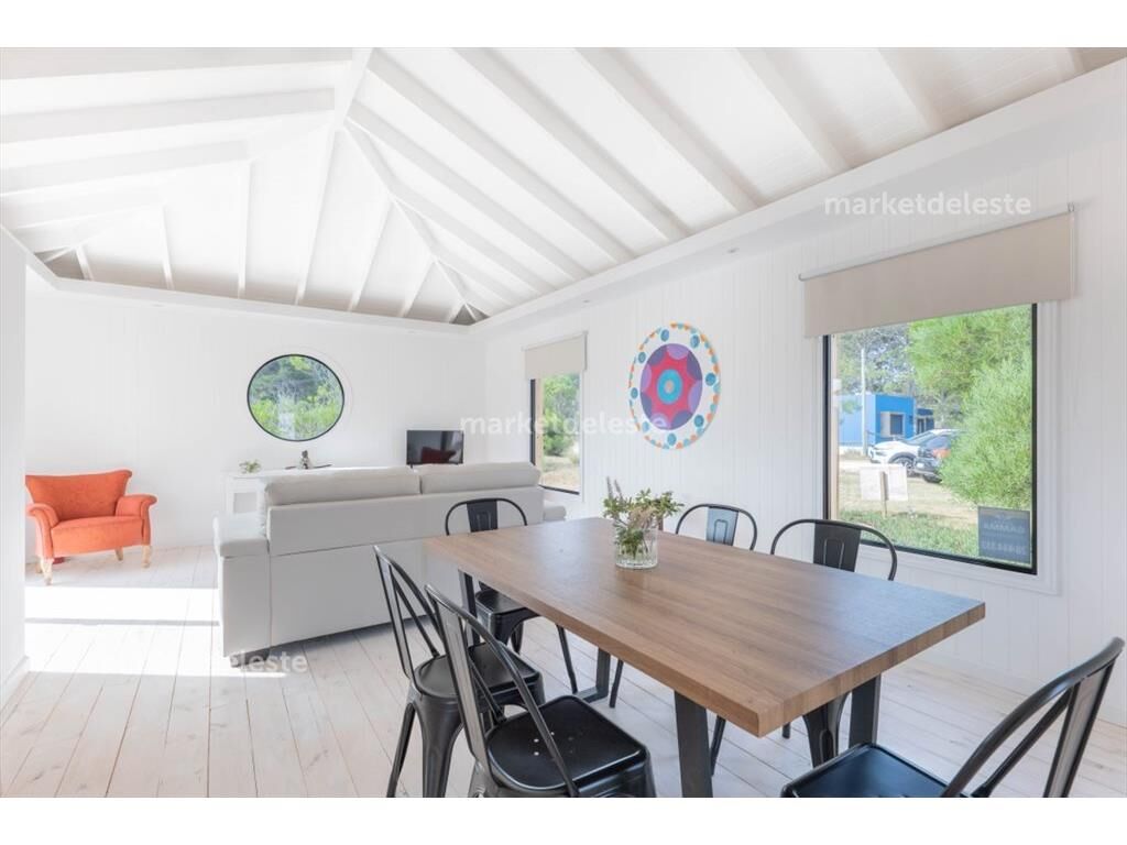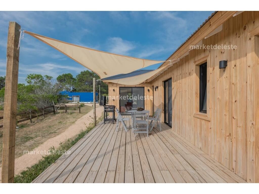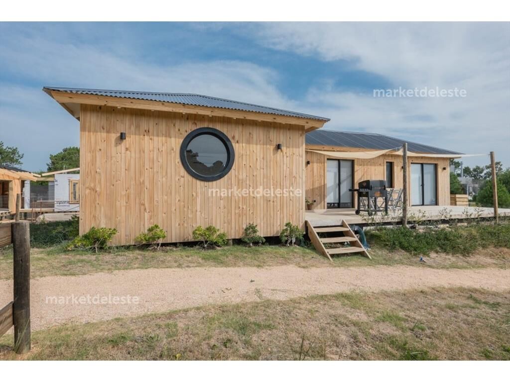 Encantadora casa en una de las zonas mas top del este, su estructura en wood freaming con estructura de madera hace que tenga una excelente aislación térmica y sonora, la casa se compone de 2 dormitorios 1 suite mas toilette, living comedor generoso y cocina en concepto integrada.