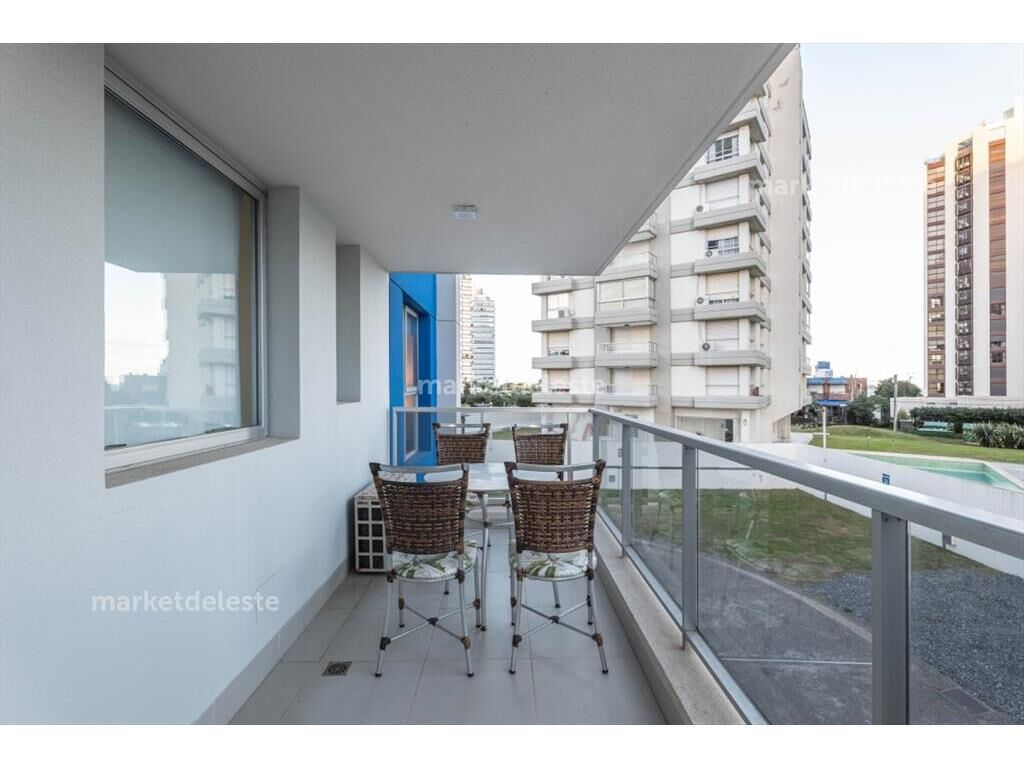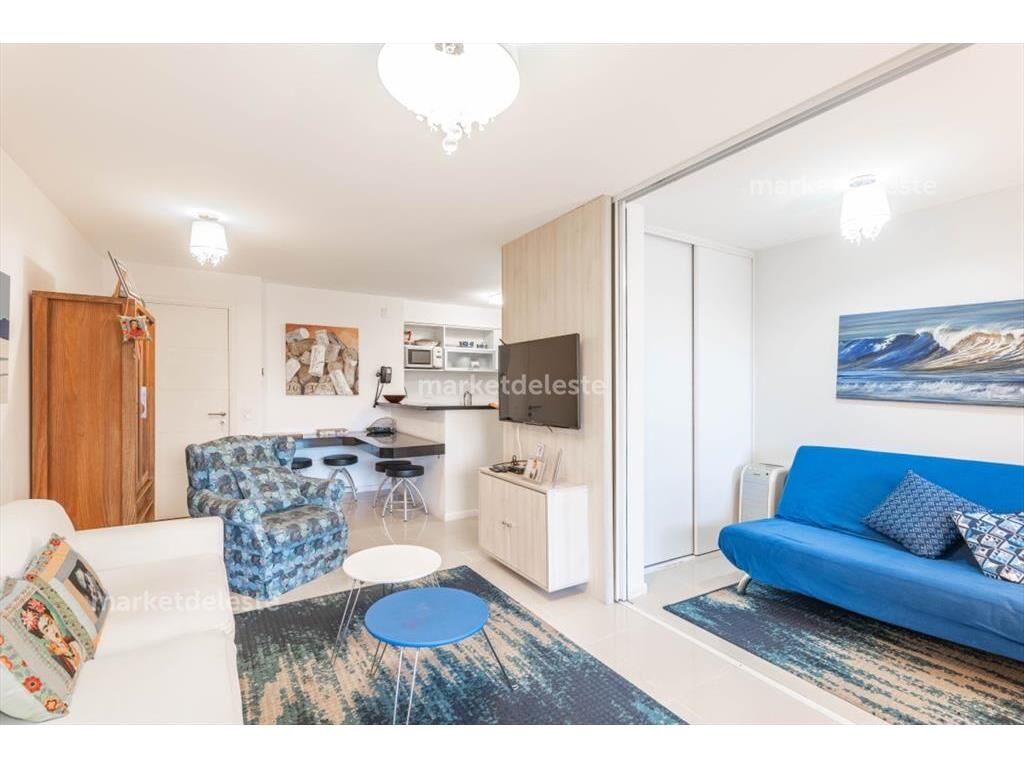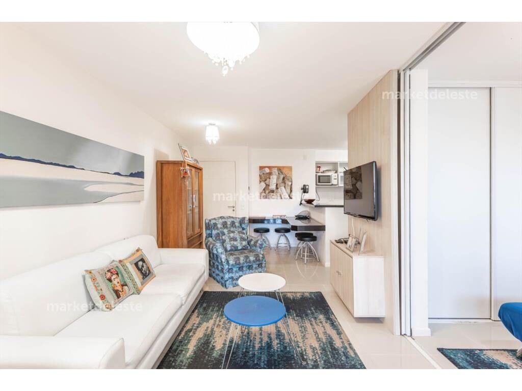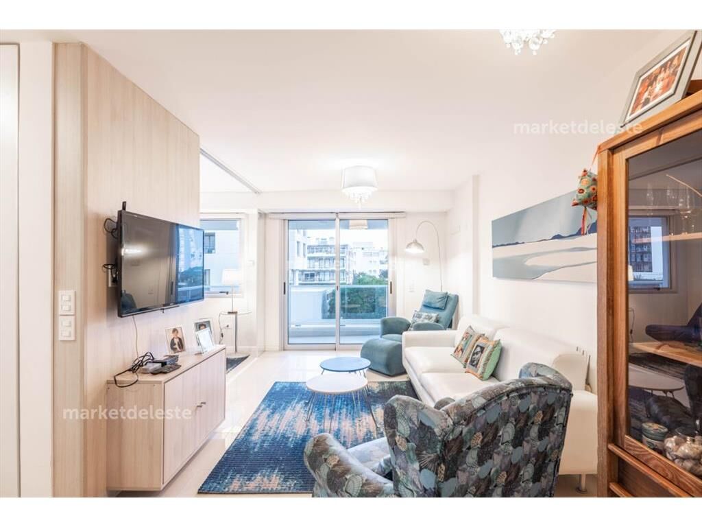 Departamento en edificio ARENAS DEL MAR en playa brava. Muy lindo equipado con terraza, cocina definida, dos dormitorios y medio, siendo el principal en suite y dos baños.
