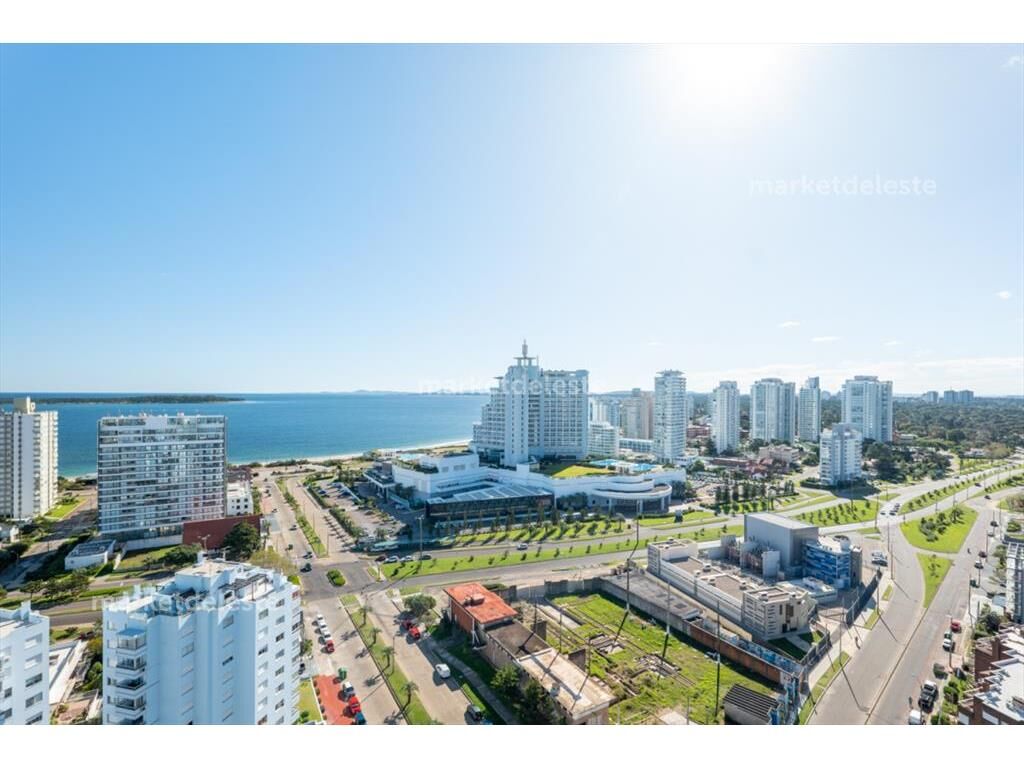 Unidad con vista a playa Mansa, cuenta con amplio living comedor, cocina integrada, dos dormitorios en suite, siendo el principal en suite con vestidor y dos baños en total.