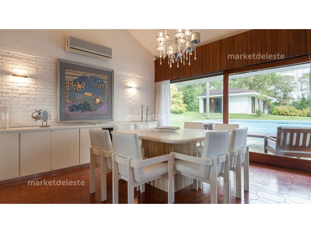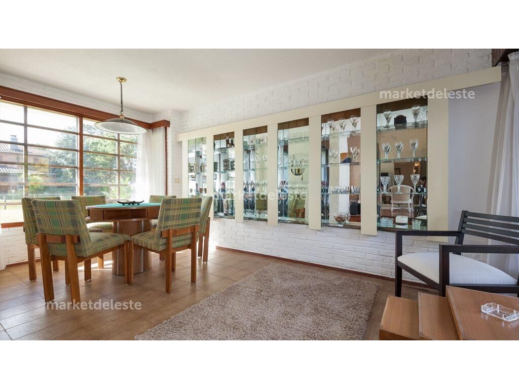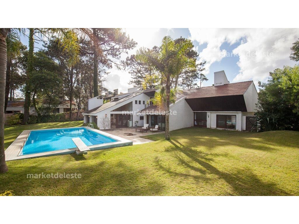 Espectacular casa en el barrio Cantegril. En 2 niveles tiene una hermosa entrada en la cual se puede disfrutar el jardín desde el primer paso que uno da en la casa. Living con ventanal al frente, comedor y un espacio muy bien logrado con una segunda mesa. 5 dormitorios de los cuales 3 son en suite. Barbacoa con acceso a la casa principal y dependencia de servicio., En el jardín se encuentra una piscina de gran tamaño y una segunda construcción donde encontramos un departamento de huéspedes y un espacio extra con la capacidad de un garaje ideal para guardar todo lo referente al jardín. Sin duda muy buena opción para quienes buscan disfrutar Punta del Este todo el año.