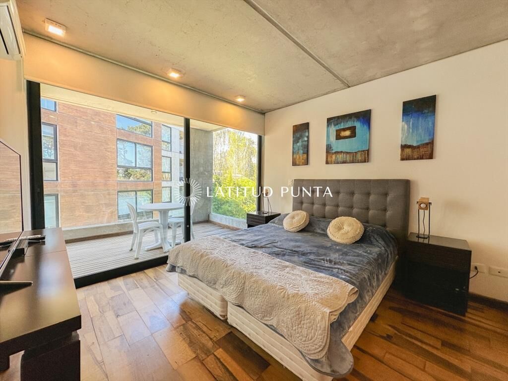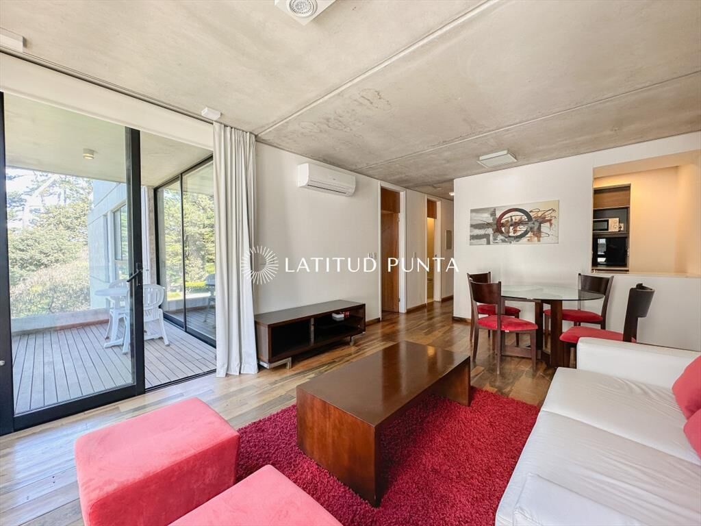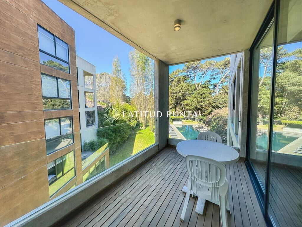 En un entorno natural y alejado del ruido se encuentra este moderno edificio con muy bueno amenities, apartamento de un dormitorio en suite más toilette, living-comedor con cocina integrada y balcón, garaje.