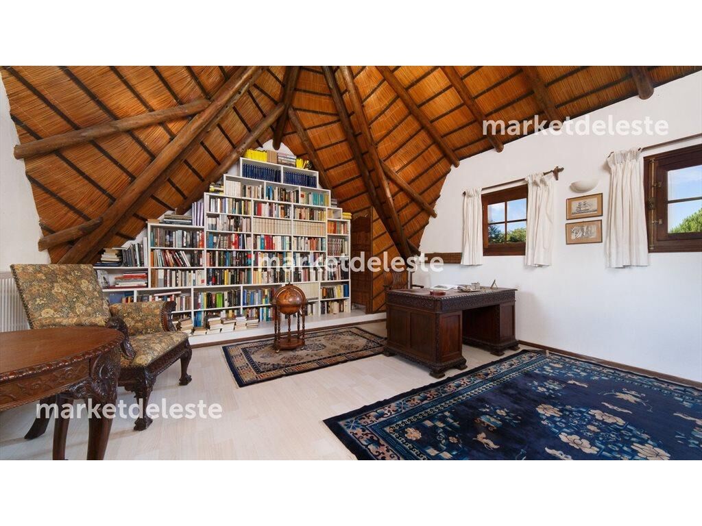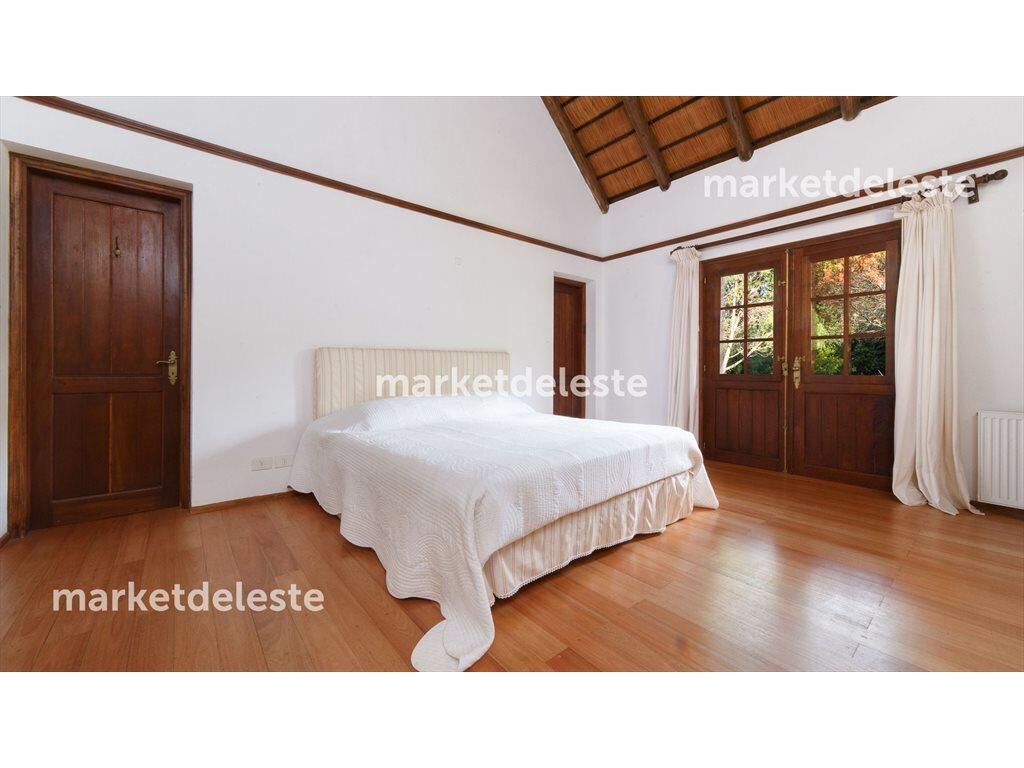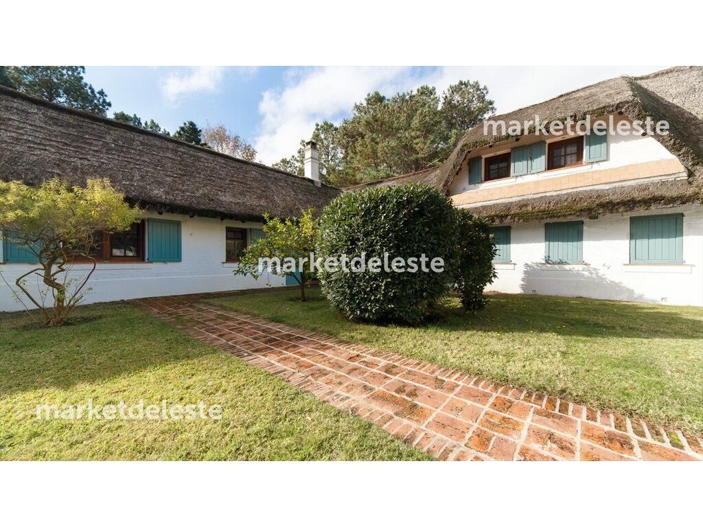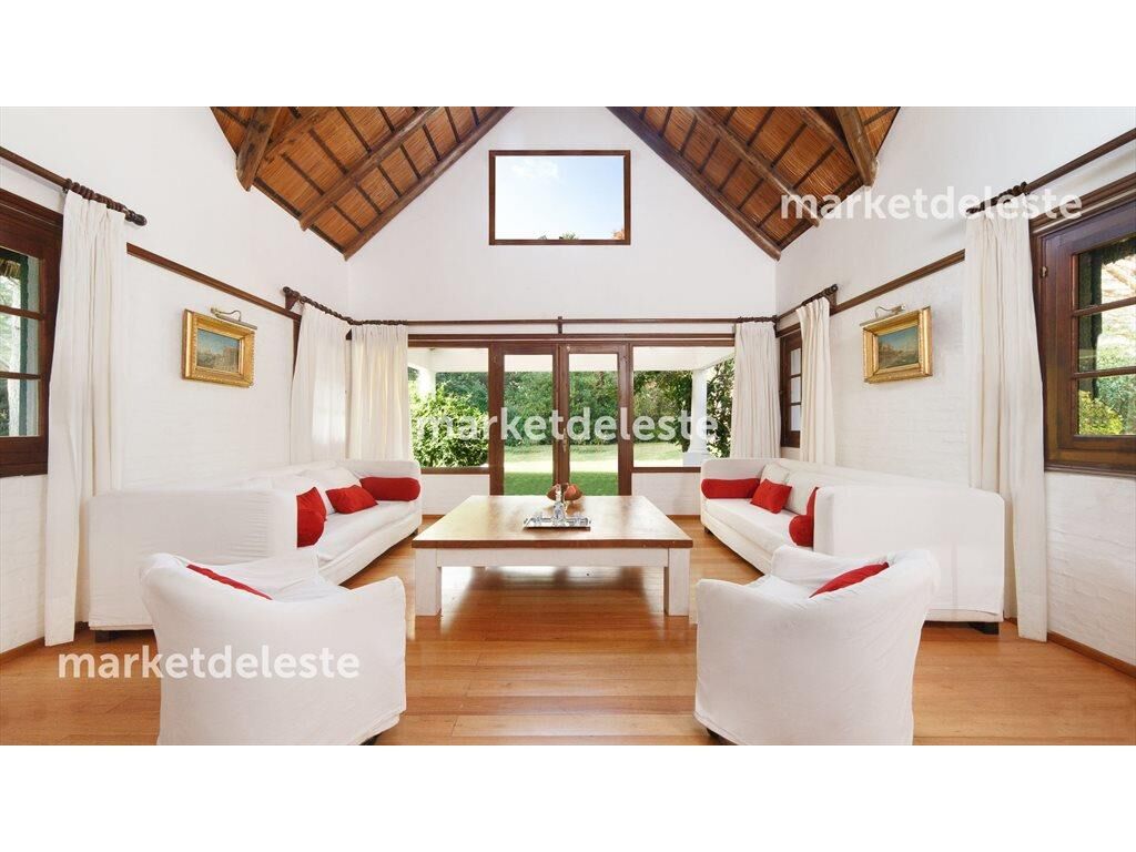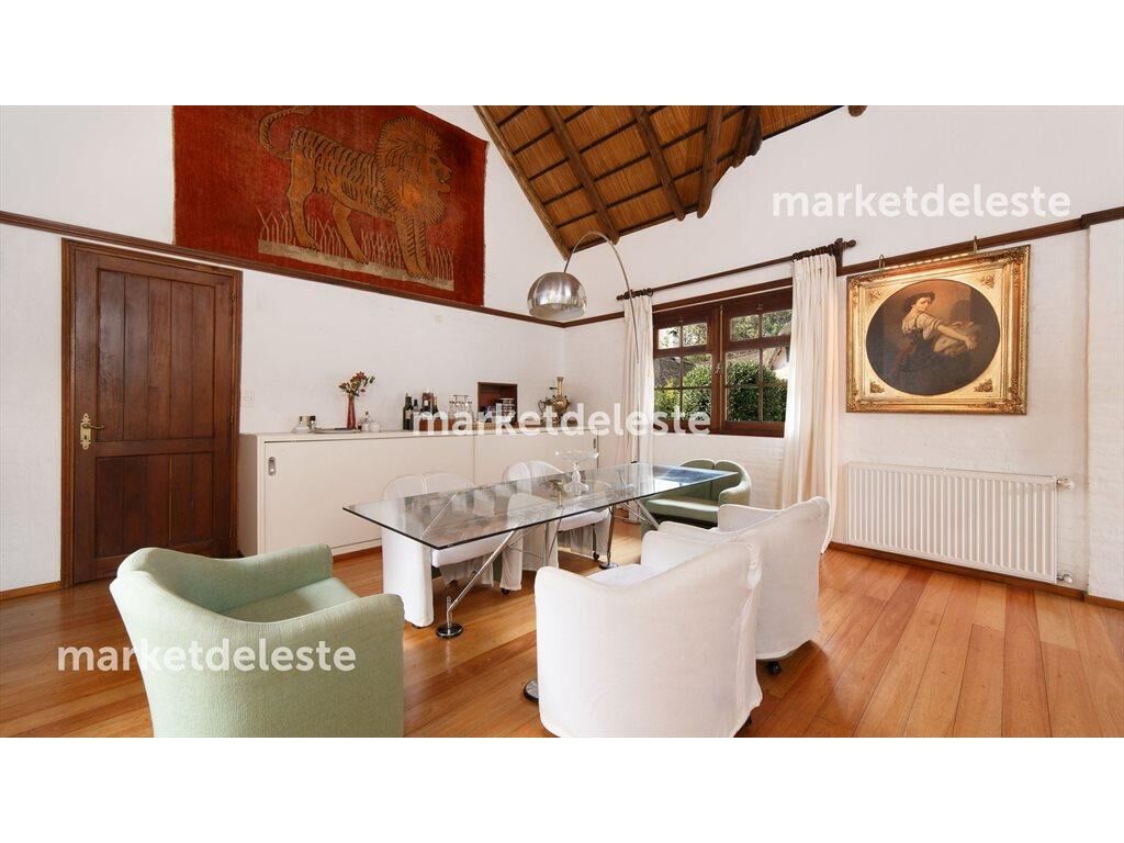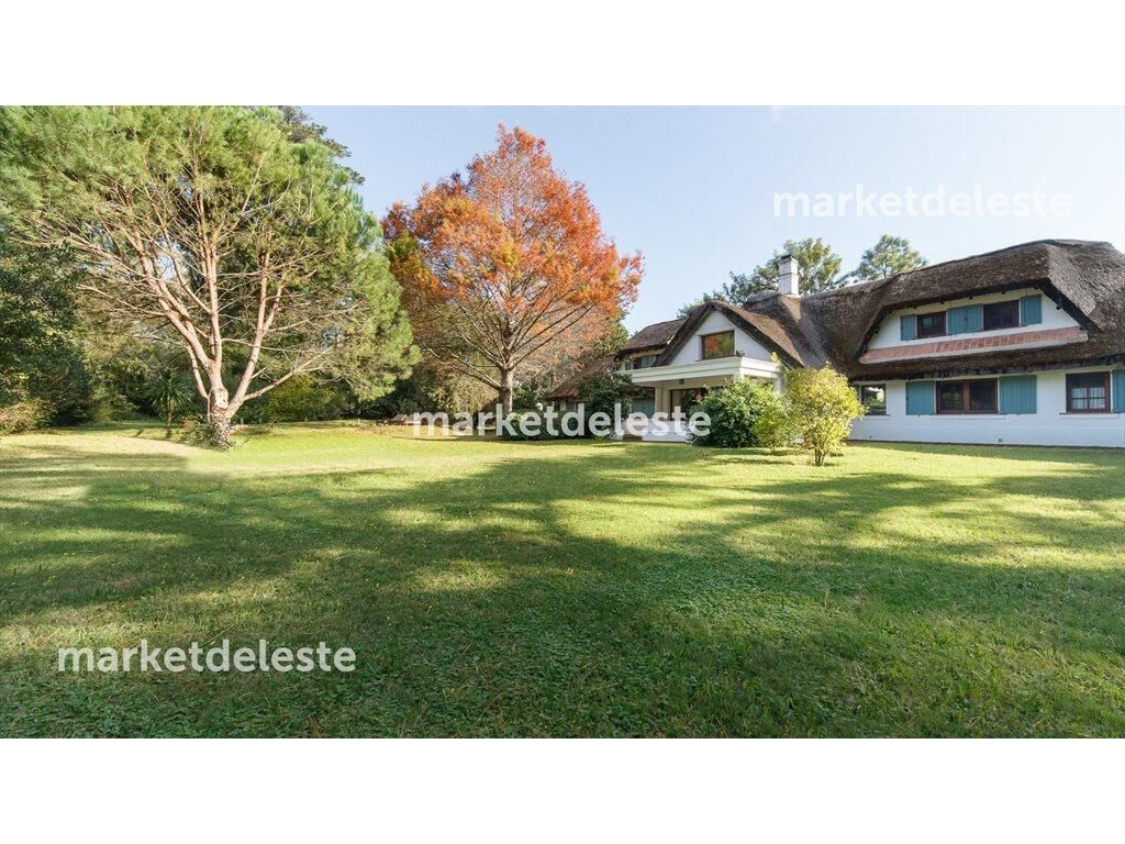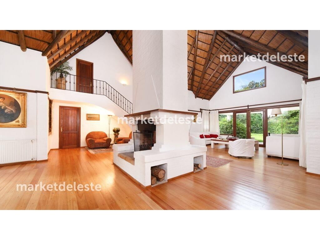 En un gran parque muy arbolado de 4.000 mts2, con piscina y parrillero techado, excelente propiedad con 450 mts2 construidos en 2 plantas, con techo de Quincho estilo europeo. Muy amplia recepción con gran hogar a leña central y calefacción por caldera a gas. Las 2 suites principales una de ellas con escritorio y vestidores, en planta baja.