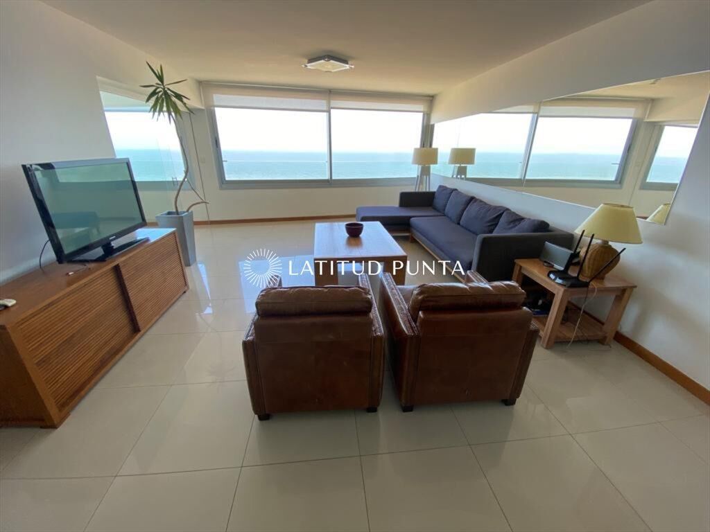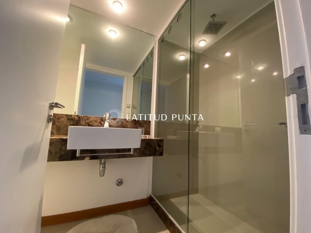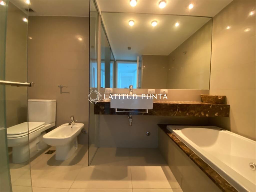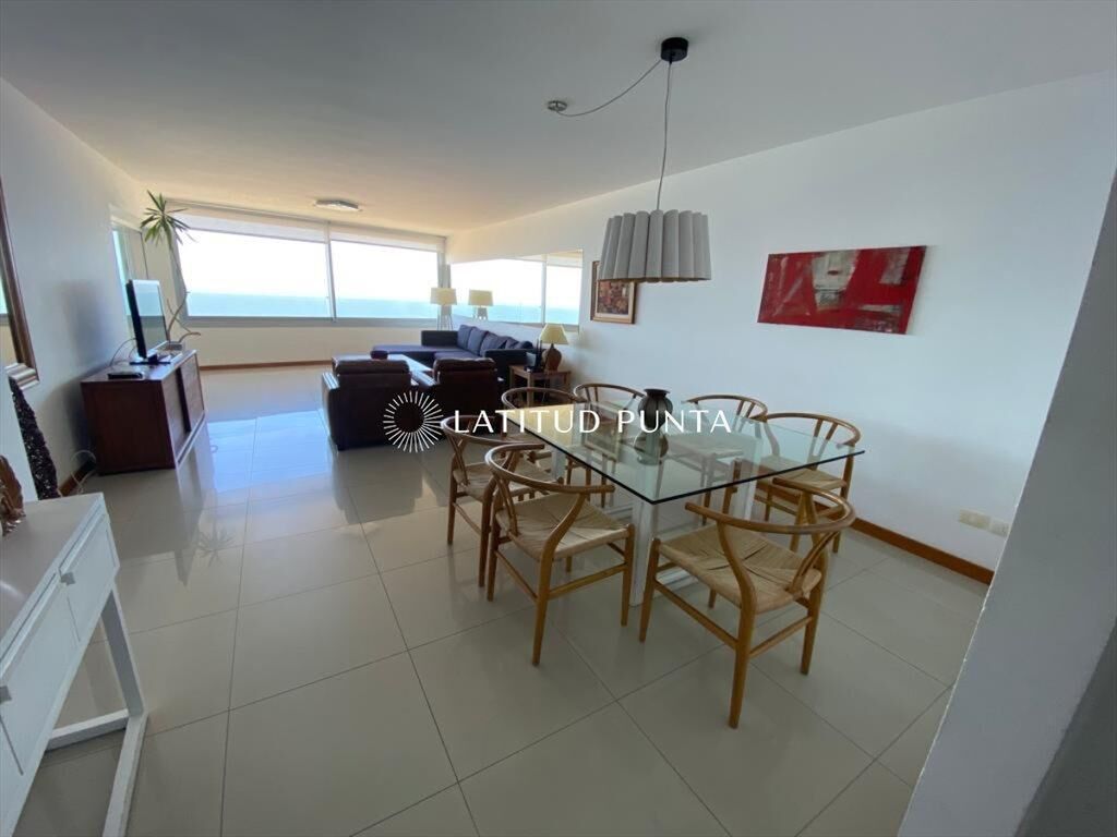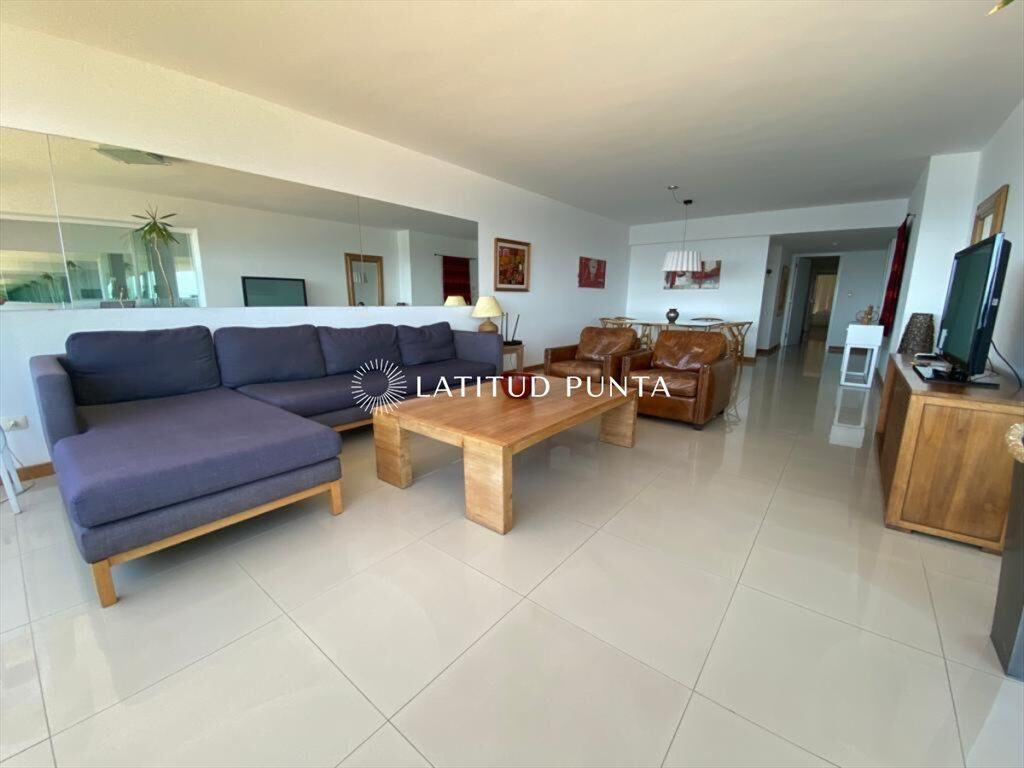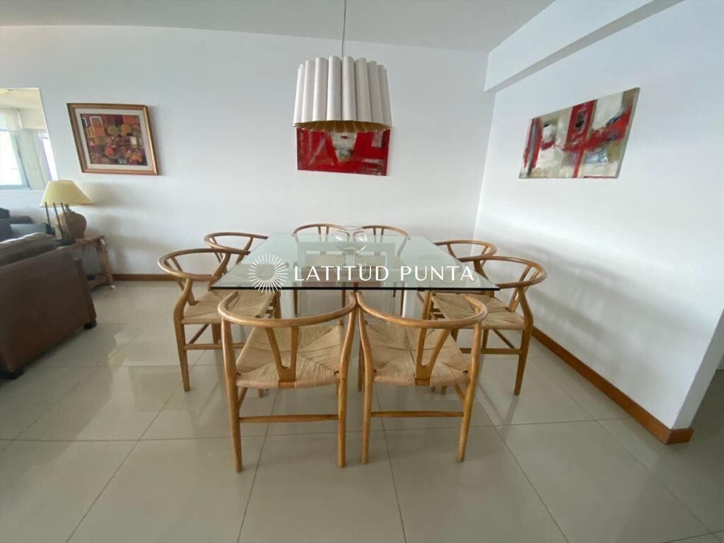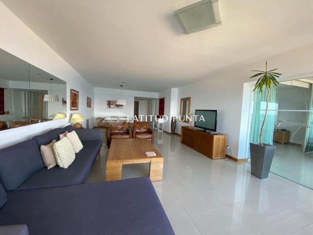 Amplio living comedor con balcón cerrado integrado, baño social con ducha, suite principal a frente con acceso a balcón, 2 dormitorios los cuales miran al contra frente con una vista maravillosa al bosque y parte de playa mansa las cuales comparten 1 baño completo, amplia cocina comedor con terraza lavadero, dependencia de servicio con baño en suite integrada al apto con doble circulación lo que permite integrarla como 1 dormitorio mas y pasar a tener una planta de 4 dormitorios, garaje y un completo equipamiento.