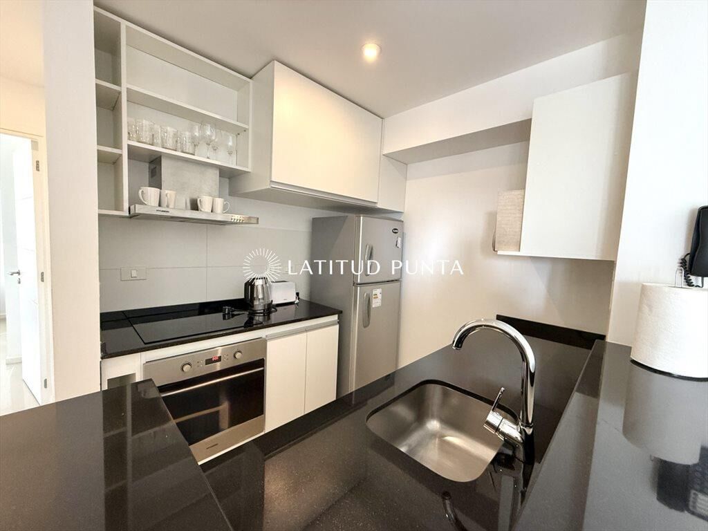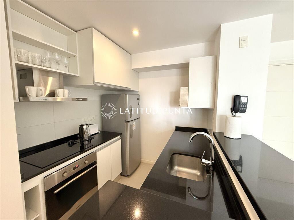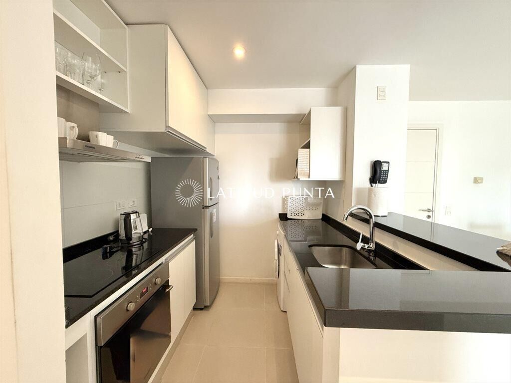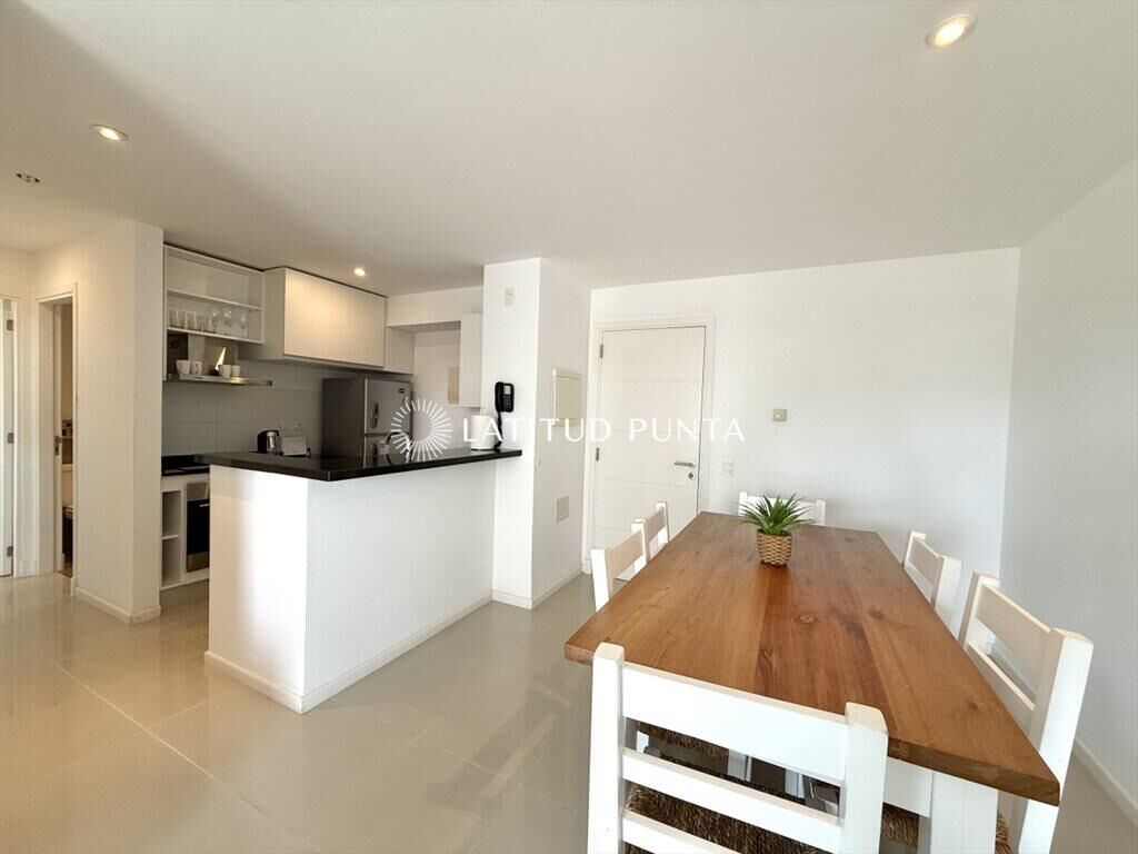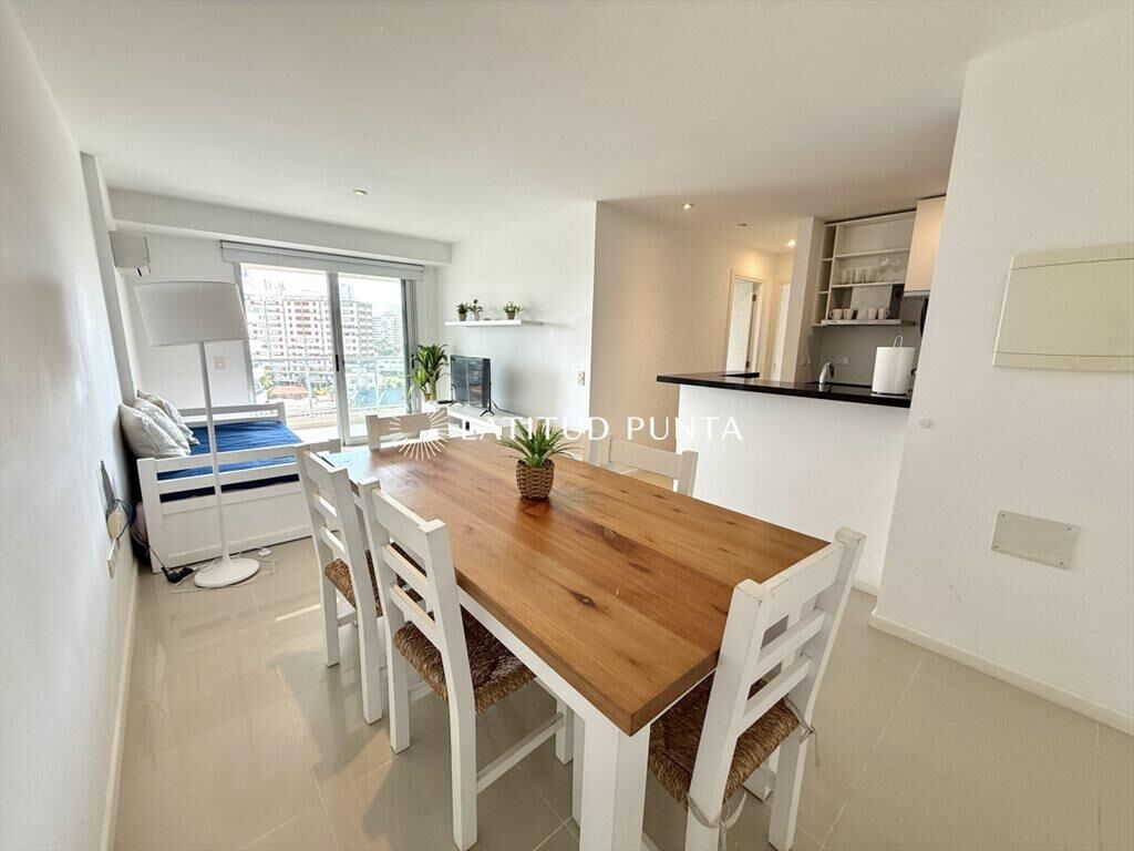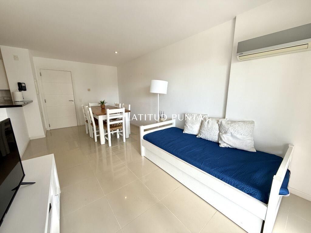 Apartamento en Aidy Grill a 150 metros del mar. Cuenta con living-comedor con amplio balcón, cocina integrada, dos dormitorios y un baño completo. Edificio con piscina exterior, barbacoas, sauna, gimnasio, servicio de playa en la parada 2 de la brava y servicio de mucamas diario.