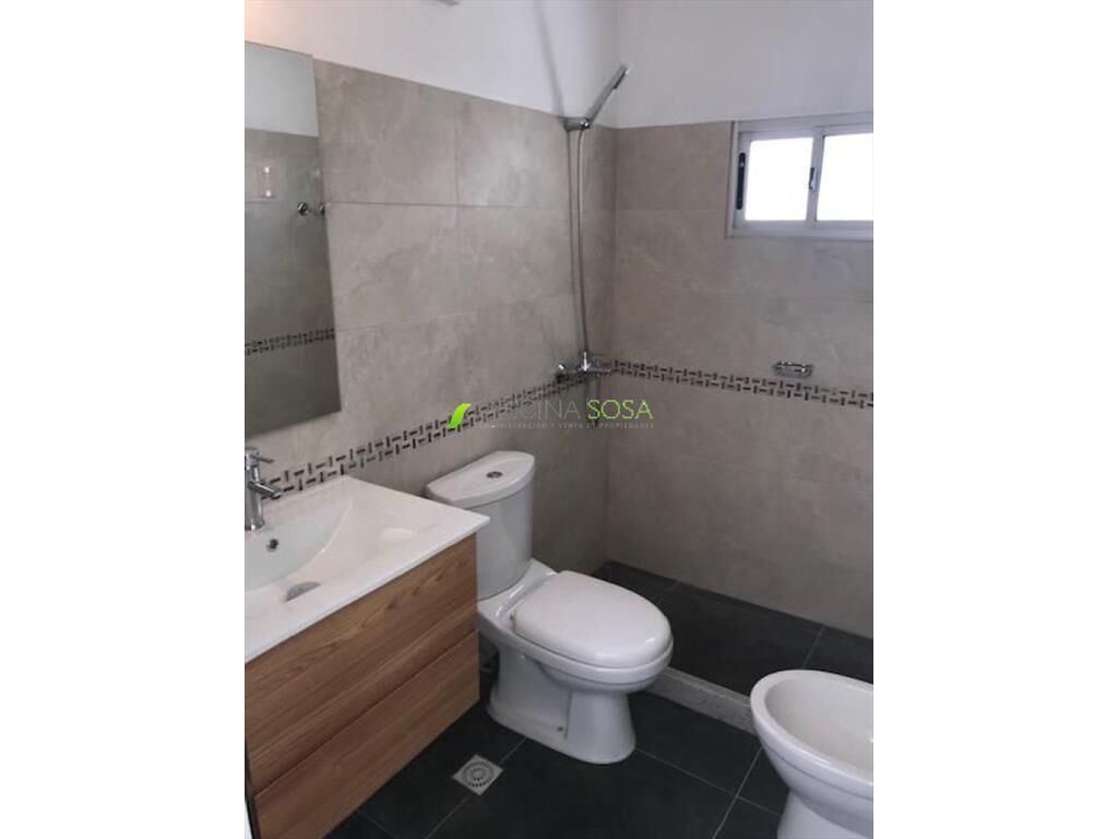 2 DORMITORIOS CON PISOS DE PORCELANATO, COMEDOR CON COCINA SEMMI INTEGRADA, BAÑO COMPLETO, GRAN FONDO VERDE, JARDIN CON ENTRADA PARA UN AUTO.