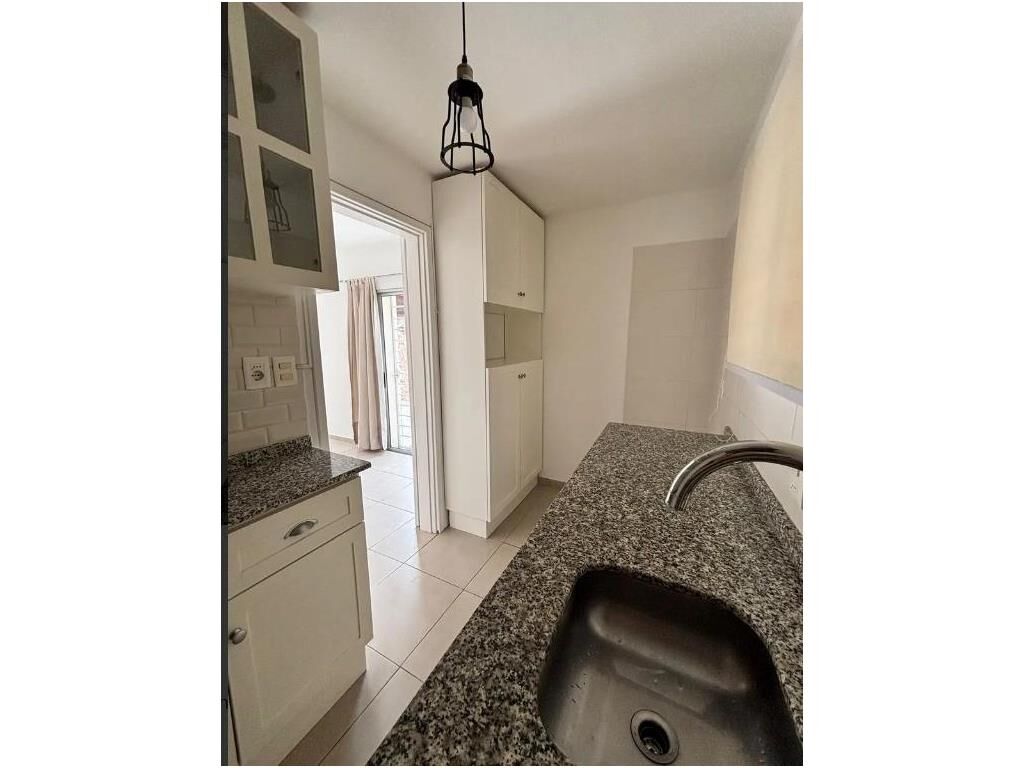 Cocina definida con campana, muebles aéreos y bajo mesada