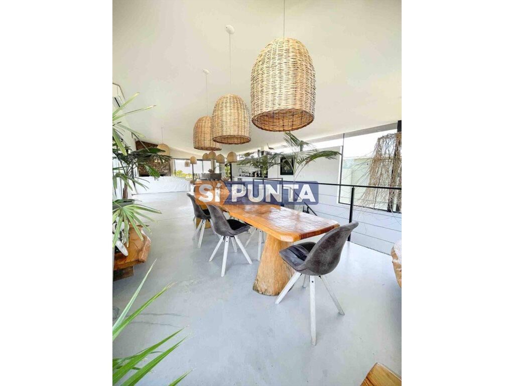 Living comedor muy amplio con barra, desayunador y mesa comedor para 10 personas , sillones , Tv 58 pulgadas galería con deck y parrillero Hogar. Capacidad para 40 personas sentadas en el living y deck . Hermosa vista al mar desde la mesa de comedor y en toda la planta alta.