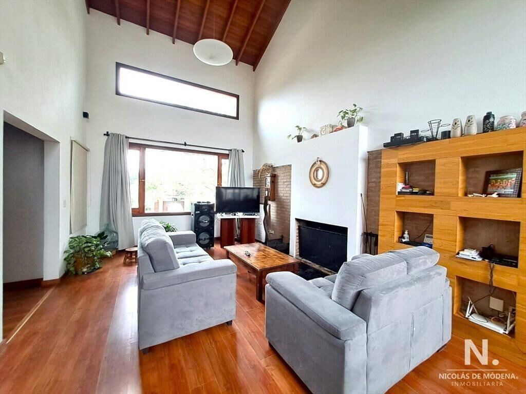 Posee dos niveles, en planta baja luminoso living comedor con estufa a leña que conecta de manera fluida con la terraza, el jardín con barbacoa y una linda piscina.