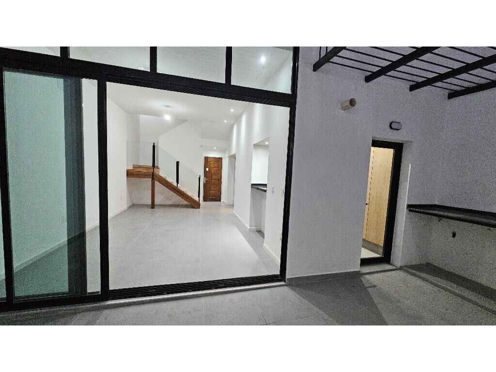 En planta baja el living comedor con piso de porcelanato de grandes dimensiones se integra armoniosamente con el patio por medio de un amplio ventanal corredizo con vidrios DVH .