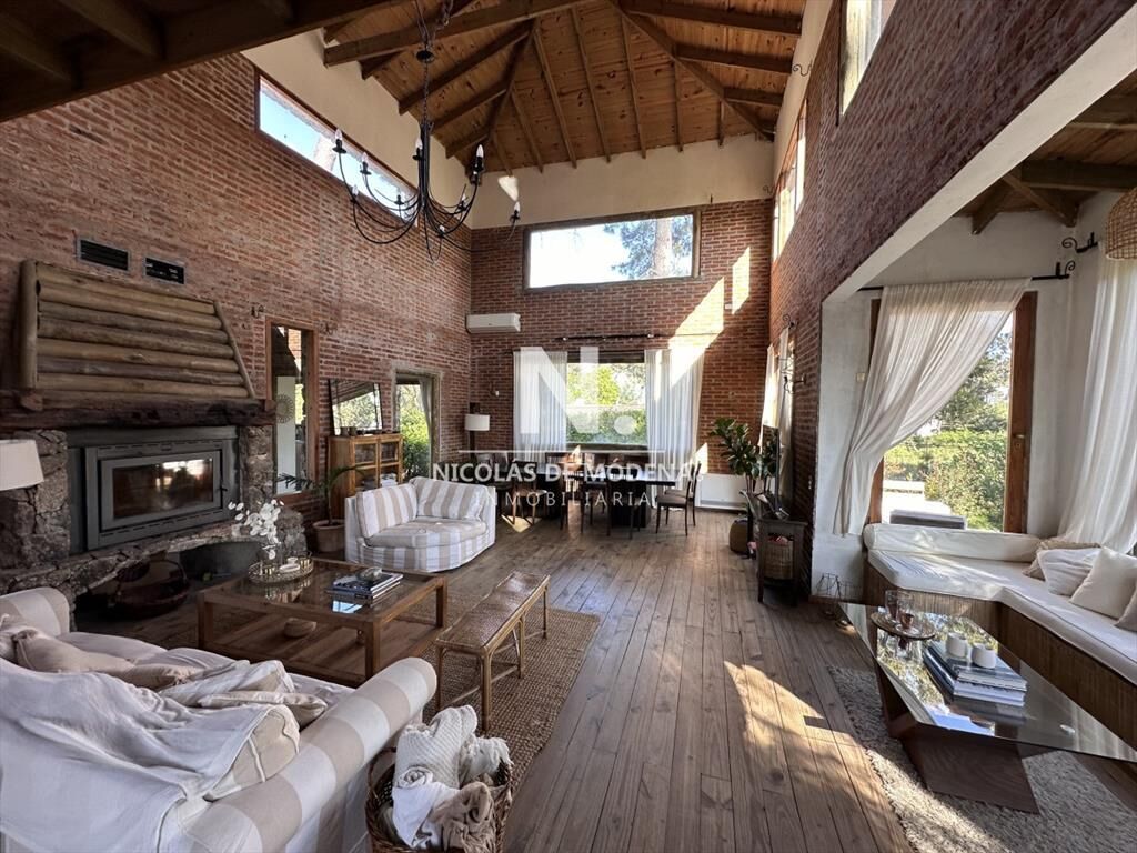 Abajo living comedor, toilette, cocina amplia, parrillero techado, piscina muy linda climatizada, 2 dormitorios en suite ambos, y en planta alta el dormitorio principal con vestidor y baño amplio . Además un lindo estar escritorio