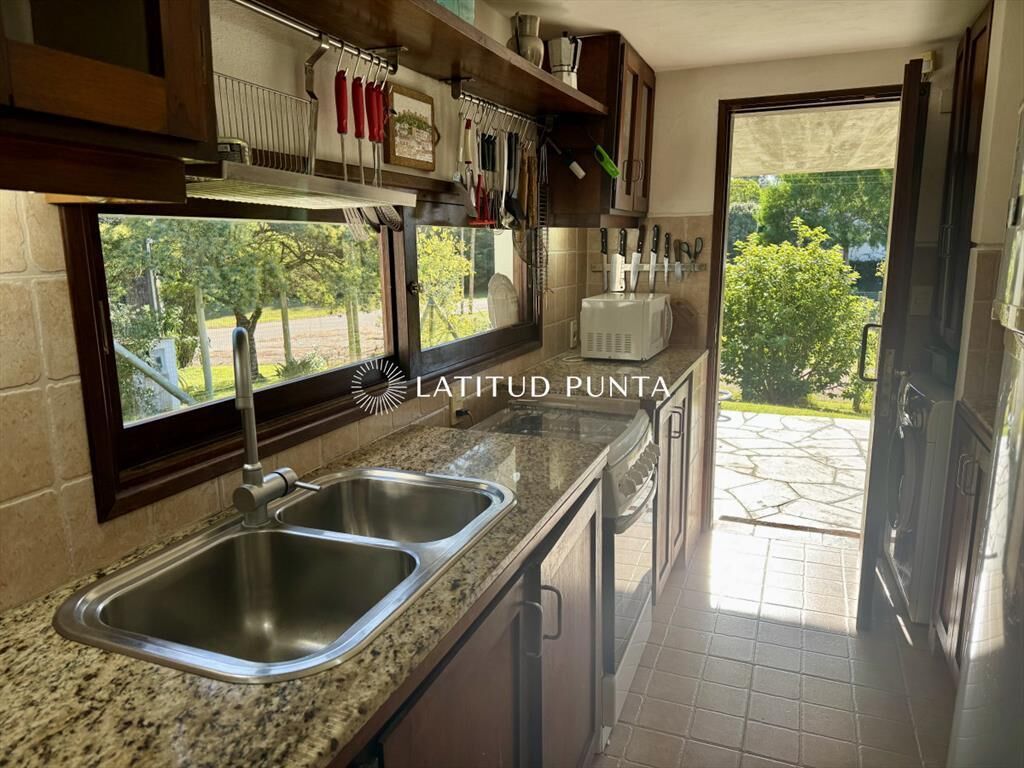 Casa de 3 dormitorios, 3 baños, (uno en suite) living sectorizado con estufa a leña, amplio comedor en desnivel, cocina definida con salida a jardín. Gran terreno y espacio verde para disfrutar. Parrillero techado. Cochera. Cuenta con 150 mts2 construidos sobre un terreno de 619 m2. Ubicada en preciosa zona de Rincón del Indio.