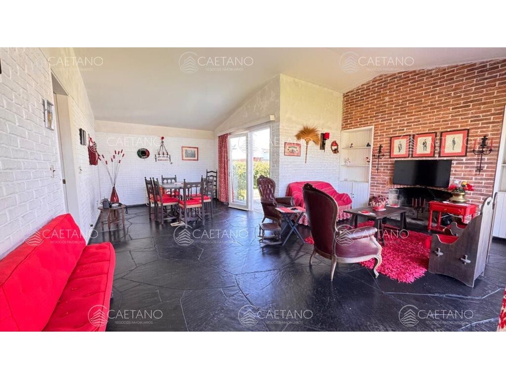 Son 3 dormitorios, 2 baños (1 en suite), cocina comedor, living-comedor con estufa a leña y cochera techada.