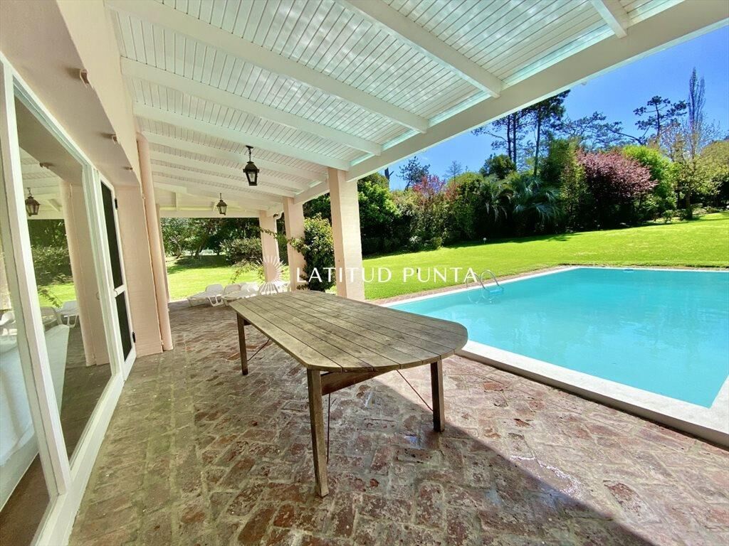 Hermosa residencia, ubicada en playa brava, Rincón del Indio, a 300 metros del mar. Living-comedor amplio, comedor, cocina lavadero, 5 dormitorios, 2 en suite, 4 baños. Parque con 4000 metros, parrillero techado y piscina.