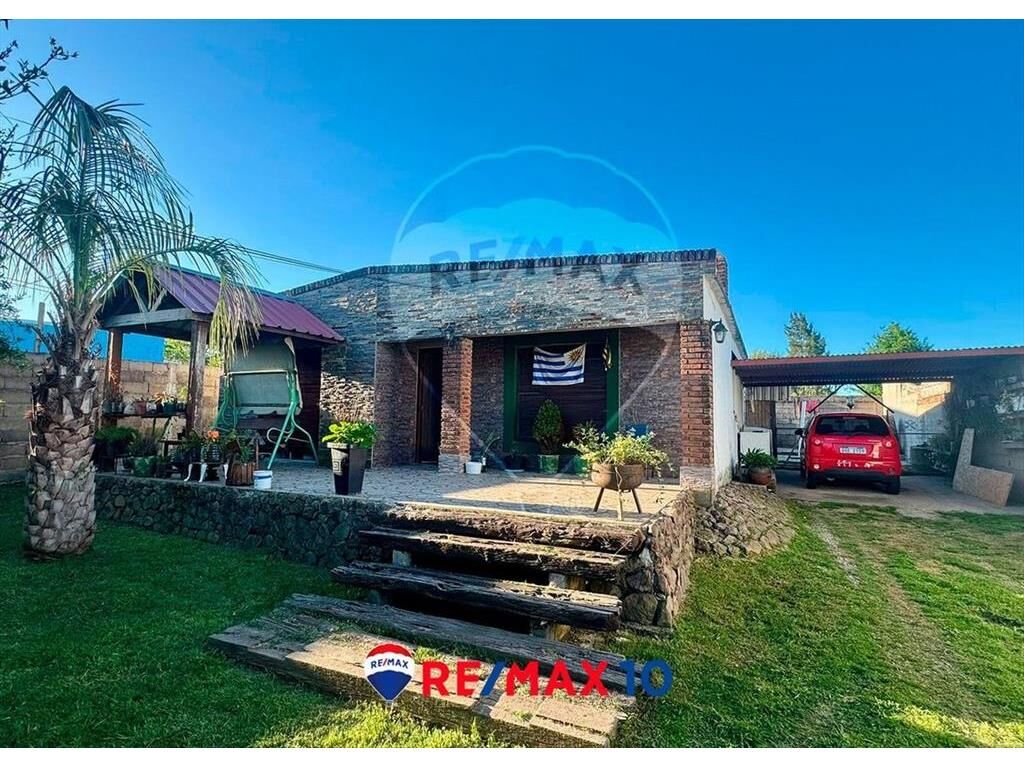 Linda propiedad con lindo frente de cesped y arboles, cuenta con living, comedor, cocina, dos dormitorios, garaje fondo con piscina chica y galpon