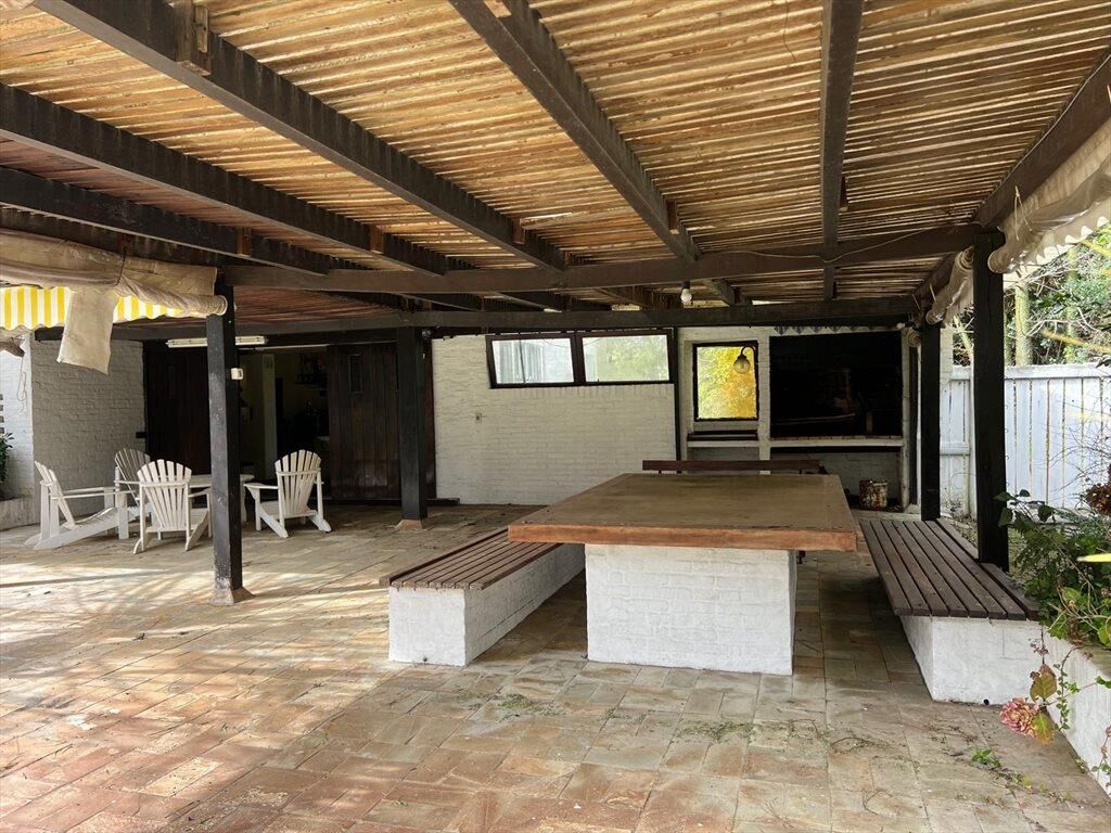 Barbacoa techada conectada al living, ideal para reuniones todo el año.
