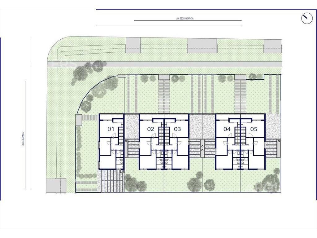 Planta baja: jardín al frente, patio con parrillero y cochera, living comedor con cocina integrada con placares, 1 baño social.