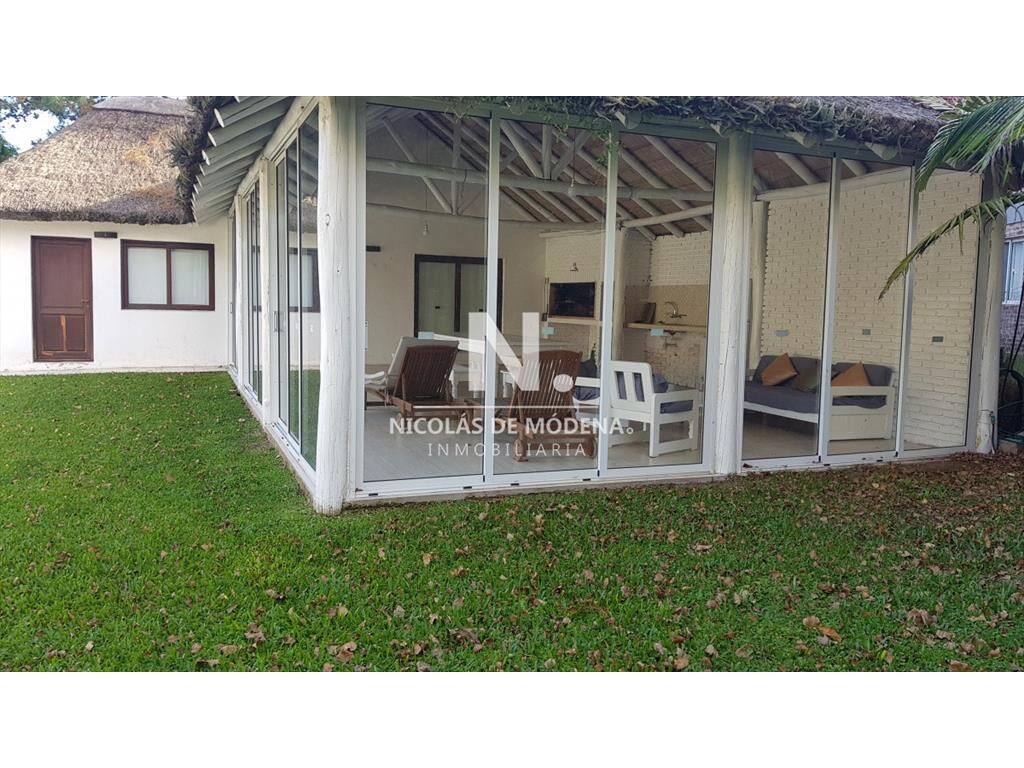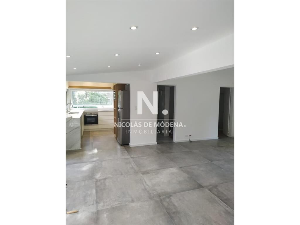 La vivienda actual cuenta con 4 dormitorios y 2 baños, ambientes cómodos y bien distribuidos. Dispone de cocina definida y un luminoso living comedor con ventanales que conectan con el jardín, permitiendo disfrutar de la tranquilidad y el entorno verde característico de la zona.
