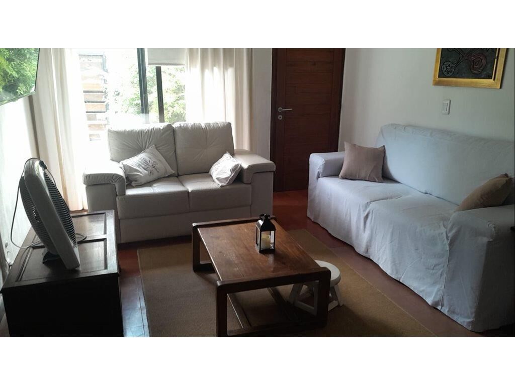 Living con aire acondicionado, comedor, 3 dorm, 2 baños (1 reciclado), cocina equipada, fondo con parrillero movil, amplia piscina estructural)