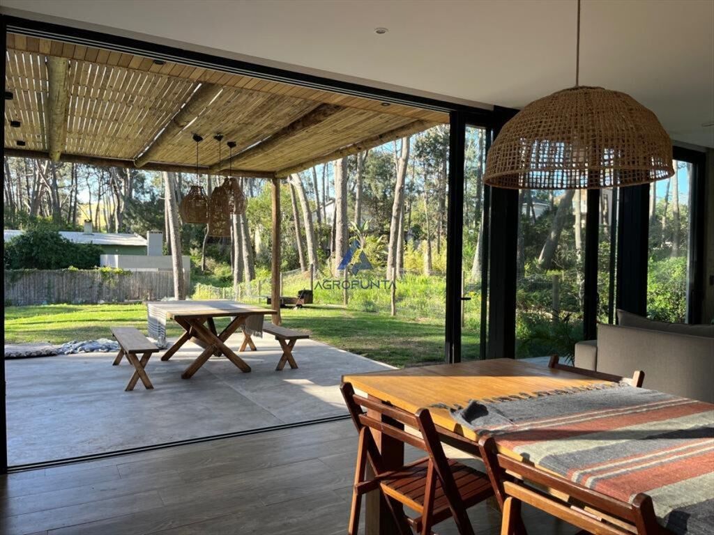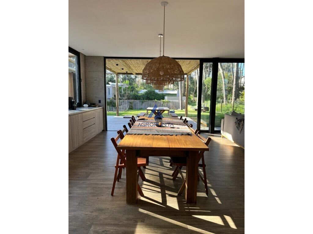 Muy linda casa moderna, a pocas cuadras de playa Montoya. Cuenta en planta baja, con gran living comedor con cocina integrada, lavadero, toillete y escritorio.