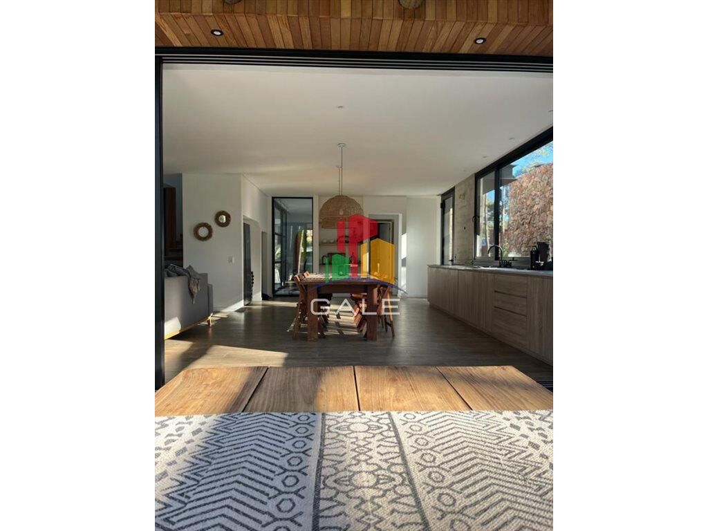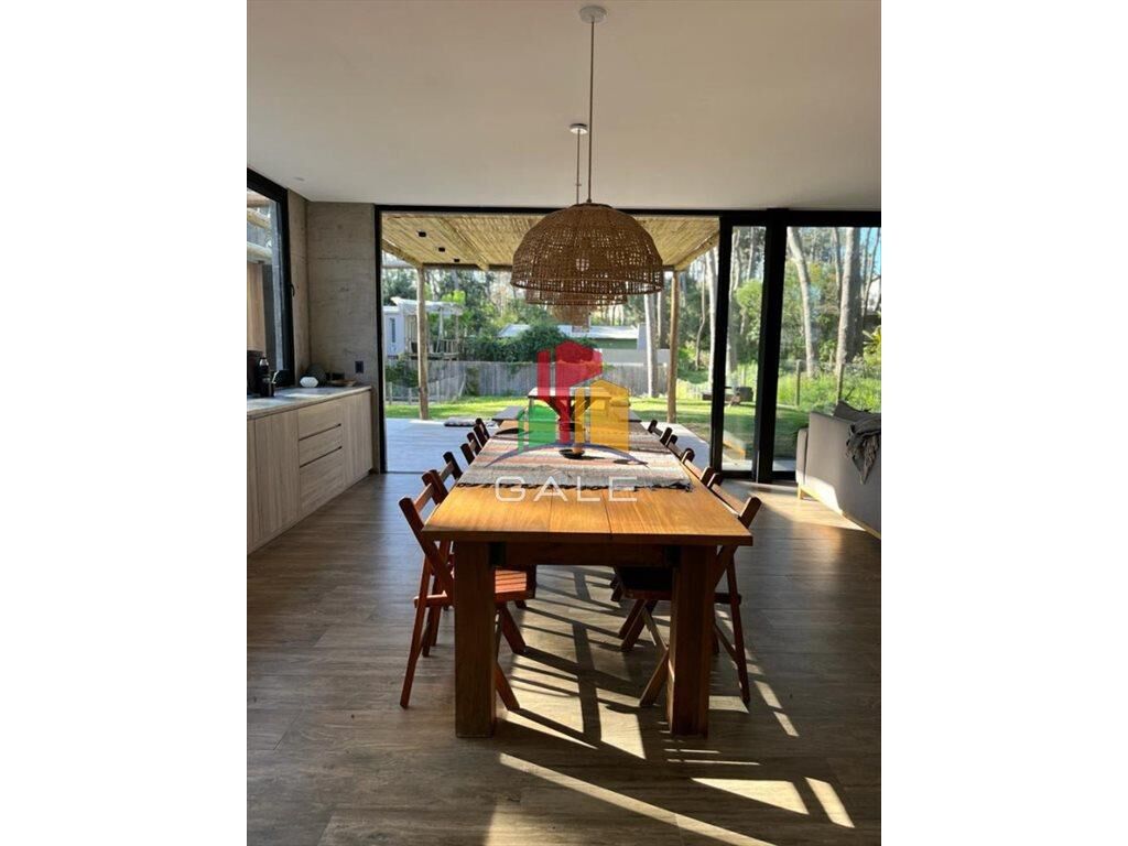 Muy linda casa moderna, a pocas cuadras de playa Montoya. Cuenta en planta baja, con gran living comedor con cocina integrada, lavadero, toillete y escritorio.