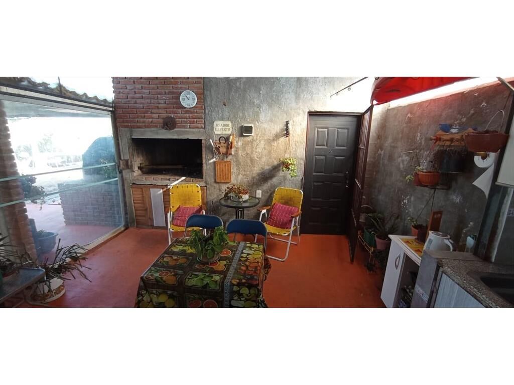 Construcción solida con techo isopanel que consta de un living comedor, 2 dormitorios, baños y cocina más otra habitación con baño. Cochera techada para 2 autos con parrillero. Patio techado con horno de barro, galpón y deck.